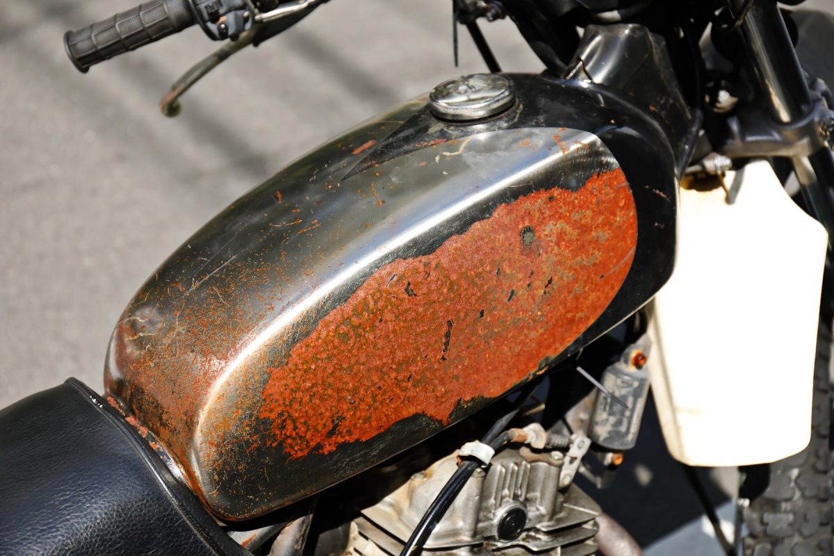 オリジナルと比べて小ぶりなタンクは、ヤマハのYB50のもの。付け替えたときすでに表面に錆が出ていたが、トータル的にいい味を出しているので気に入っているとのこと。