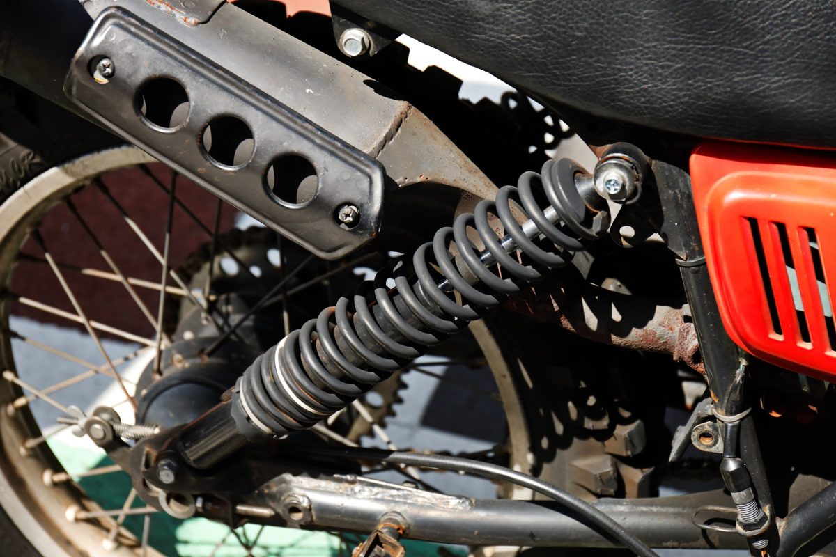 サスペンションなども当時のパーツにこだわる。バイク好きなスタッフや、複数のスペシャリストにアドバイスや整備をお願いしているので絶好調だとか。