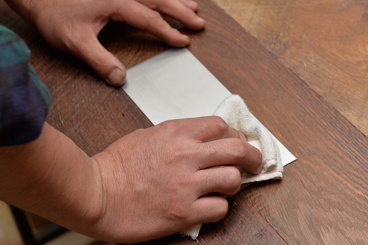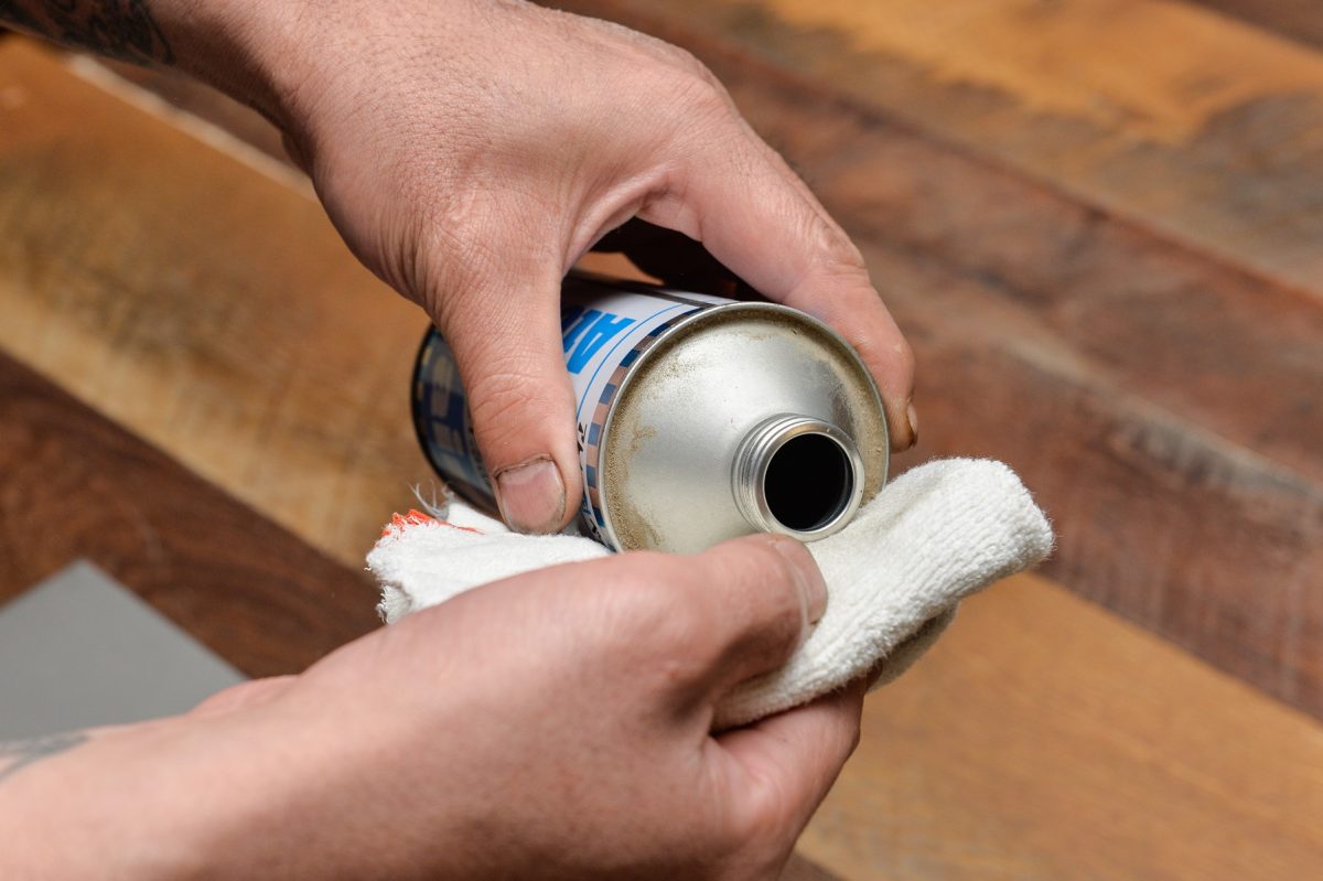 1. 乾いた布雑巾にラッカーシンナーを染みこませる。
