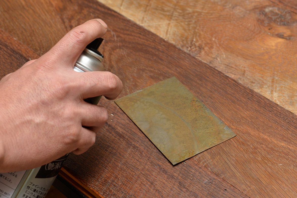 6. 表面が乾いたら黒染めスプレーを吹きかける。
