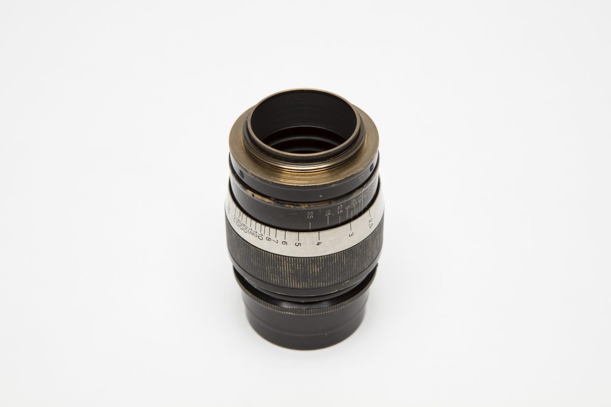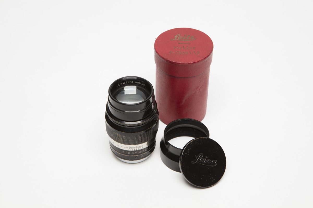 著名な写真家たちに愛された中望遠レンズ。最初期にごくわずかだけオールブラックが存在する、典型的なコレクターズアイテム。鏡胴のスケールは象嵌仕上げと非常に手が込んだ作りである。
