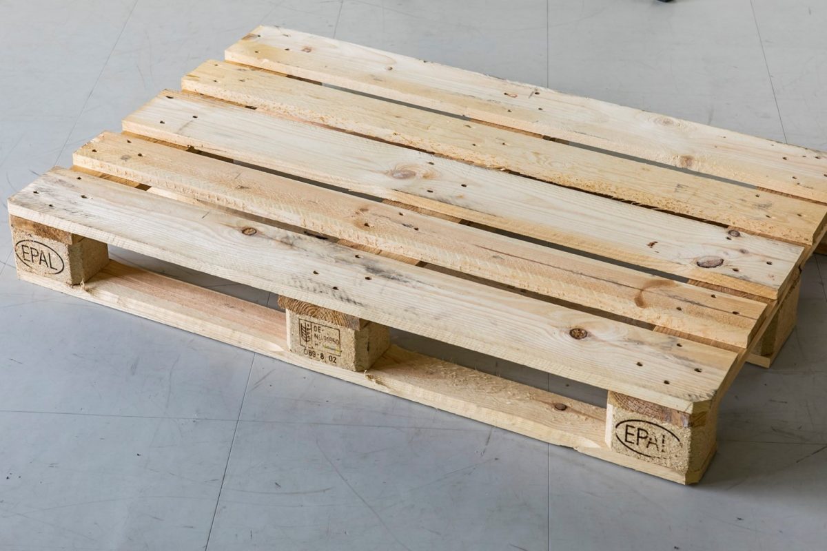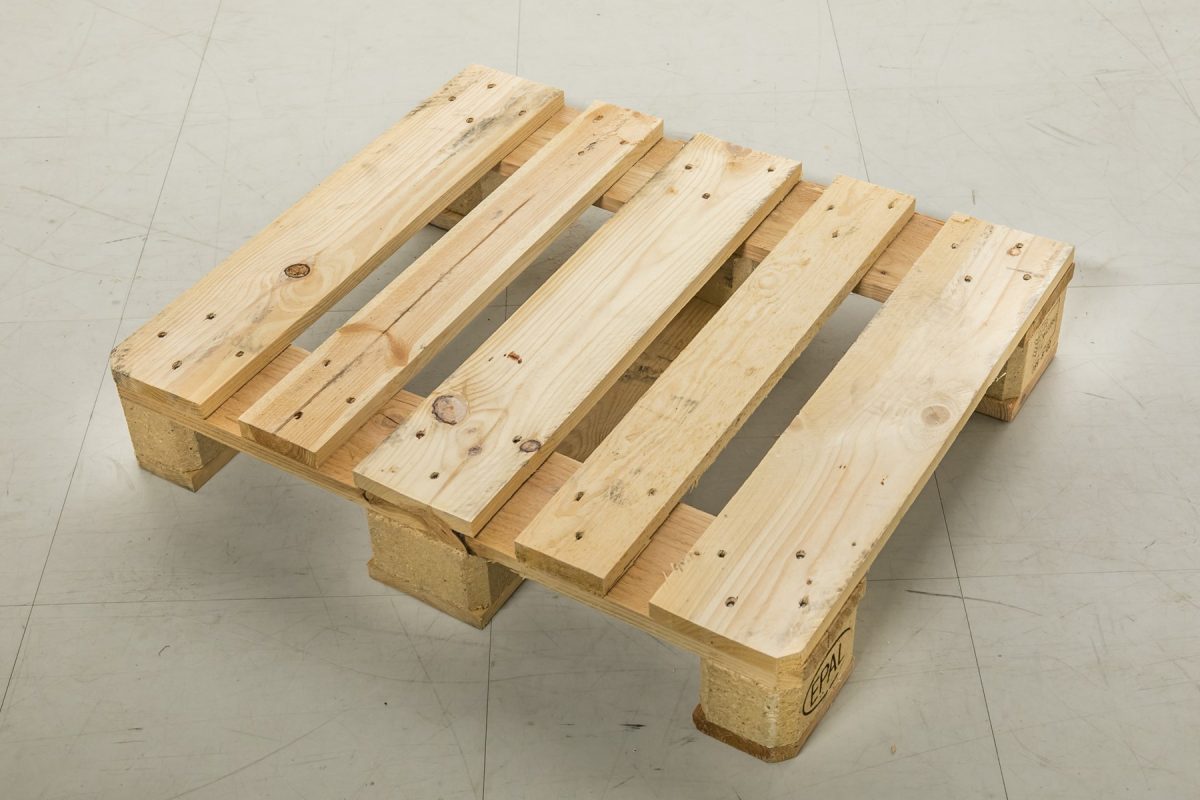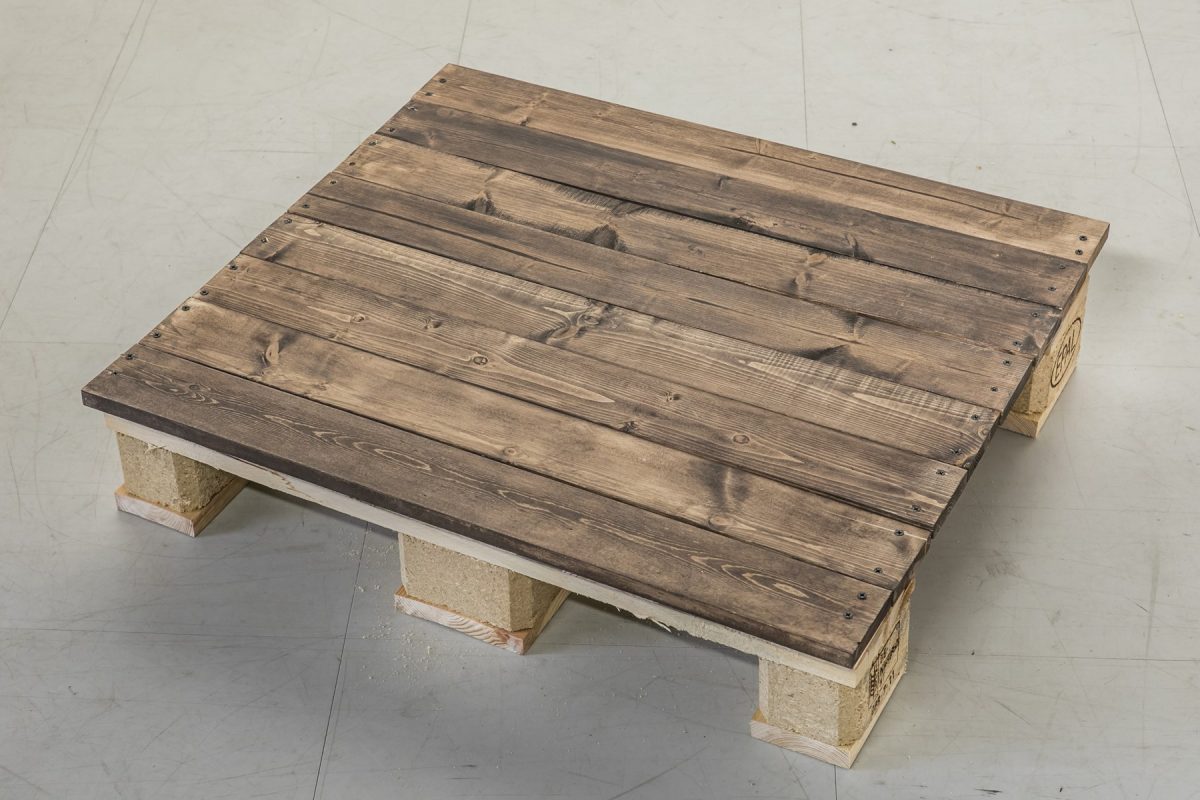800×1200×140㎜のユーロパレットを2つ用意。重ねることで収納スペースを作ることができる。1枚約3000円