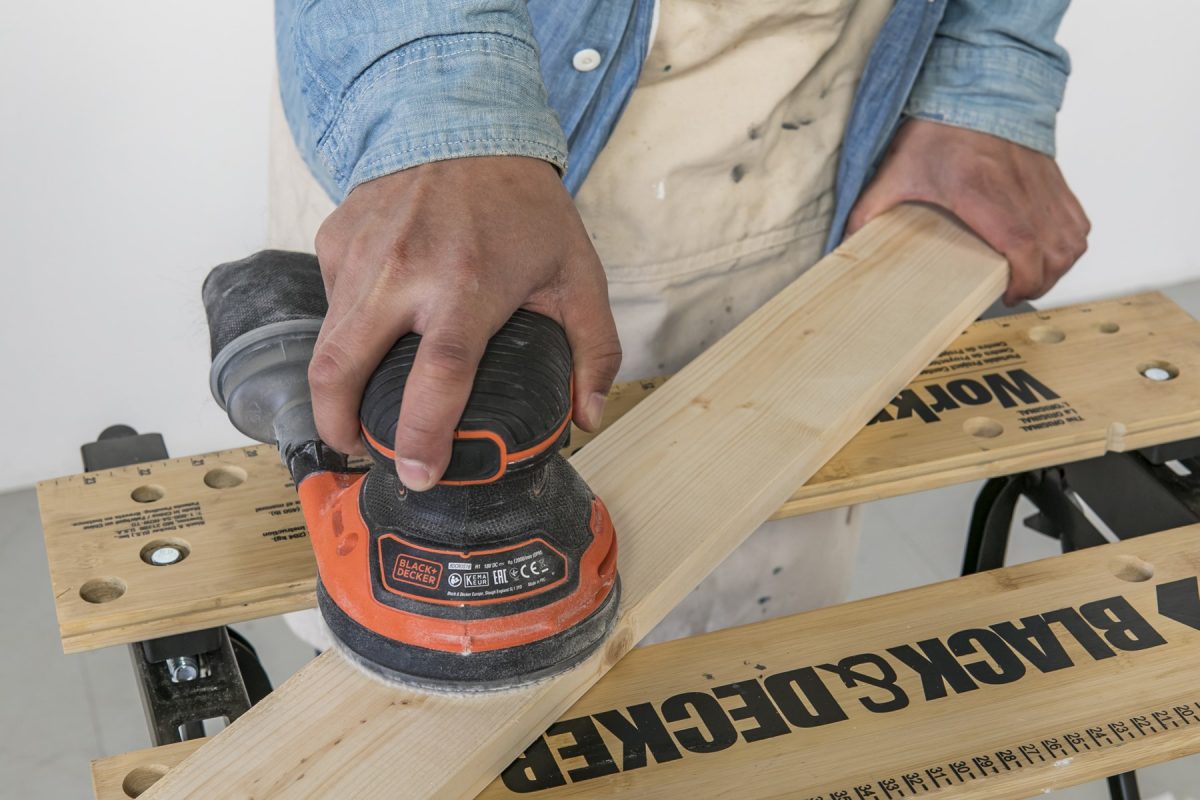 サンダーとは、ムラなく効率的に材料を研磨する工具。木材を切断したときにできるバリを取ったり、塗装前の下地を整えたりと何かと出番が多い。
