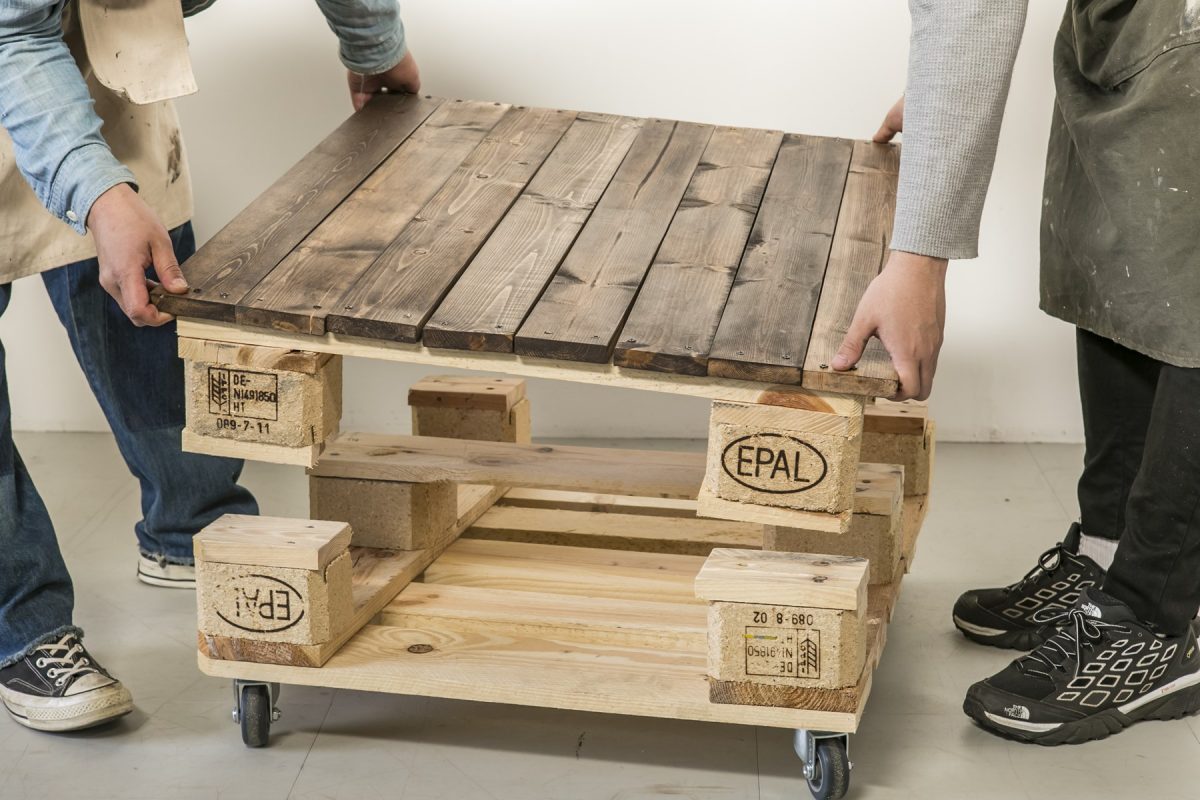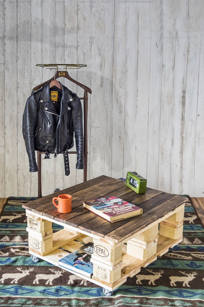 気になるのがパレットの入手方法。ホームセンターで扱っている店がなかなかないため、専門サイトなどで検索してみよう。またヨーロッパで一般的に使われてるパレットは、ユーロパレット(120×80㎝)とブロックパレット(120×100㎝)の2種類のサイズがある。さらに日本で使われているJIS規格は110×110㎝とまたサイズが異なるので、用途に合わせて選ぼう。さぁ、テーブル作りに挑戦!