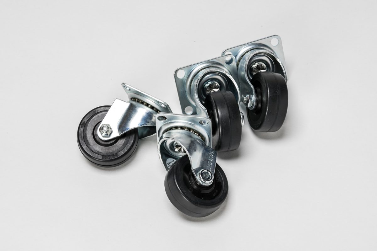 今回はキャスターを付けてみる。移動しやすいので、模様替えにも即対応できるし、掃除もしやすいのがメリットだ。4個用意しよう(取り付けるビスもお忘れなく)。各400円