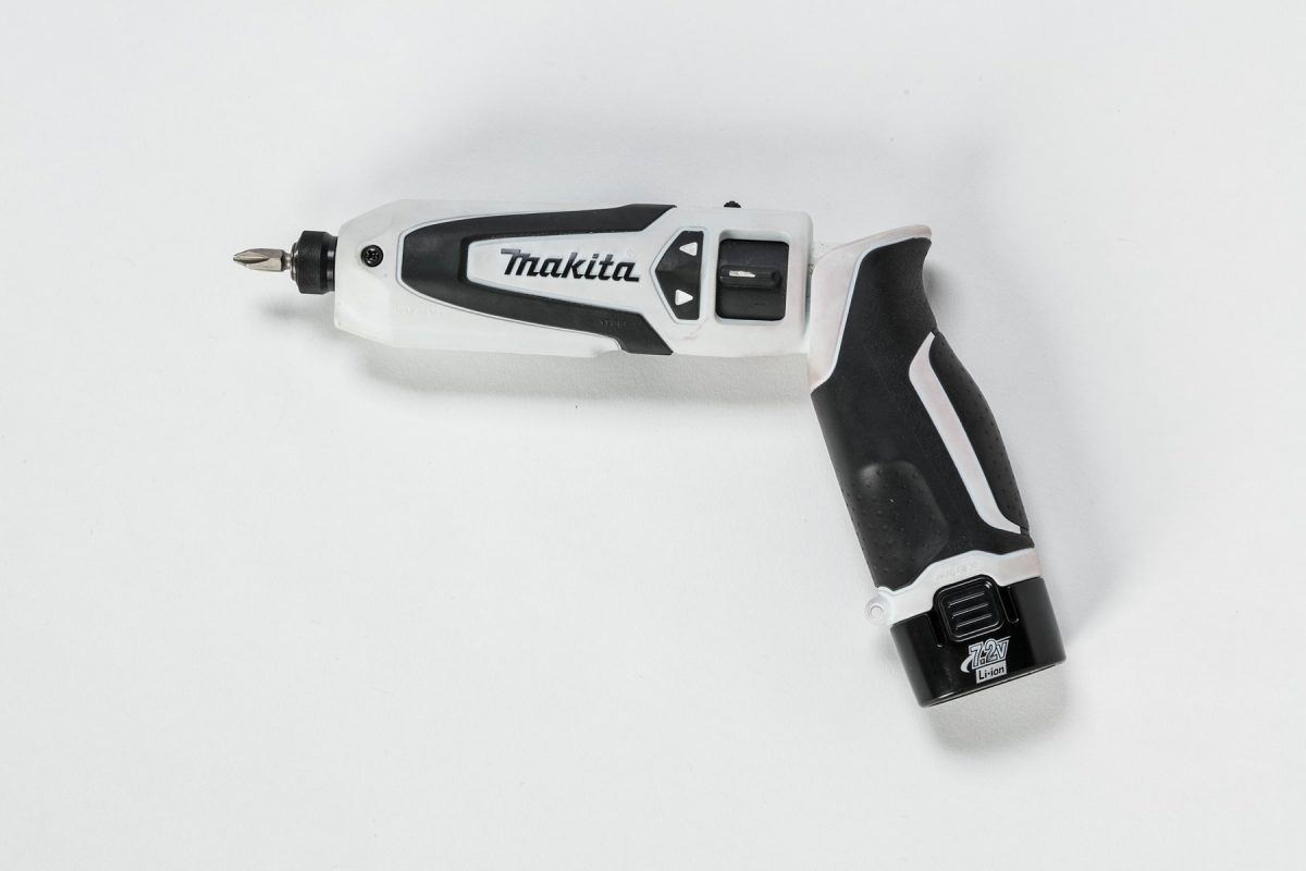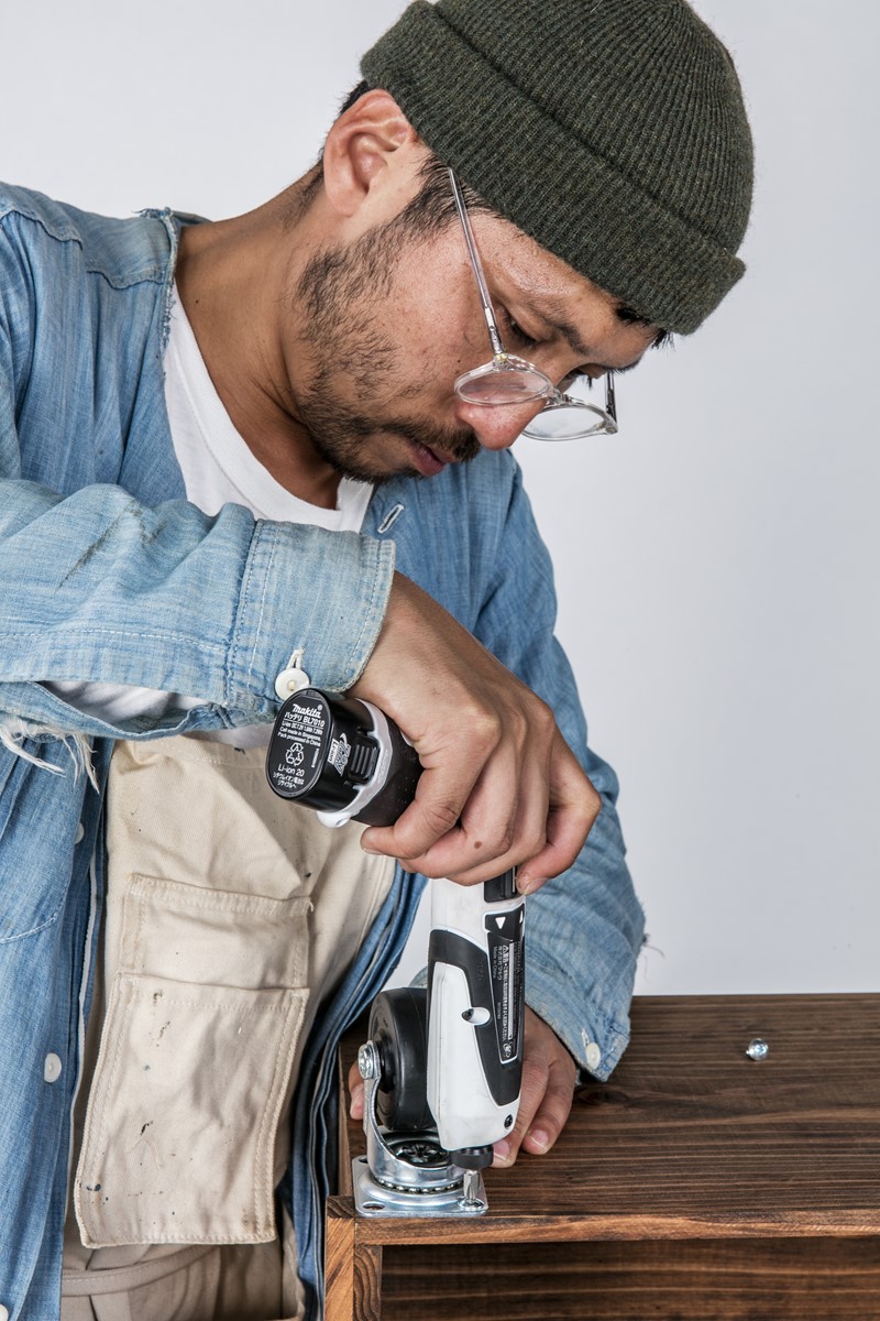 キャスターを付けるときに使用するインパクトドライバー。充電型のコンパクトタイプなので、キャスターを付けるなどの簡単な作業のときに便利だ。