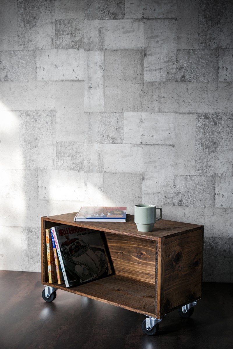 そこで今回はちょっとアレンジしてミニテーブルを作ってみる。りんご箱そのまま使ってもいいが、少し手を加えて渋みのある色合いのオイルを塗ってヴィンテージ風に仕上げるのがLightning流。また移動しやすいようにキャスターを付ければ、場所を選ばずマルチに活用できるようになる。