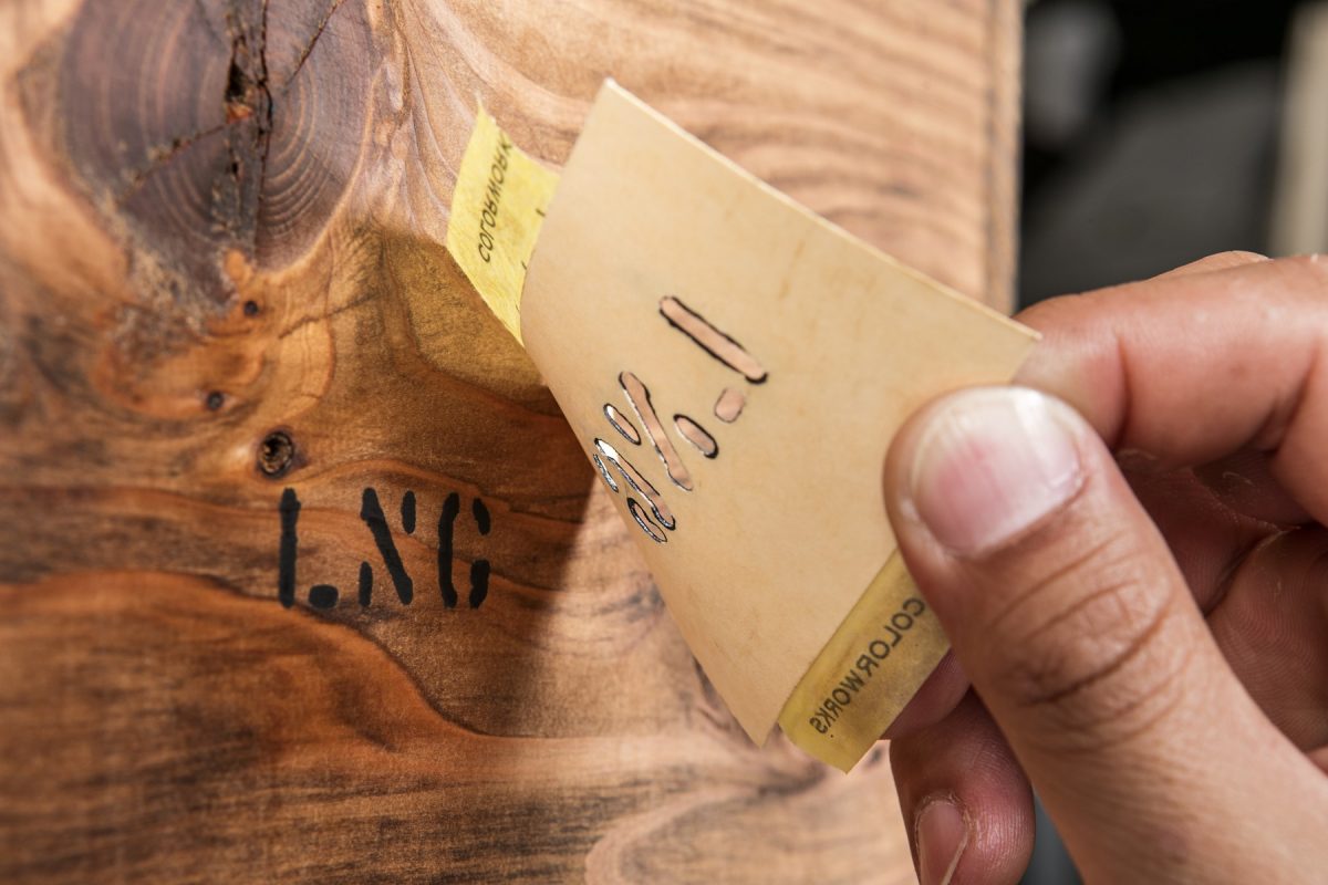 サイドに飾りとしてステンシルをしてみる。ステンシルシートを貼り付け、塗料でとんとんと軽く叩くように塗っていくとキレイに仕上がる。ステンシルの方法は下記記事で詳しく取り上げているのでチェックしてみてほしい。