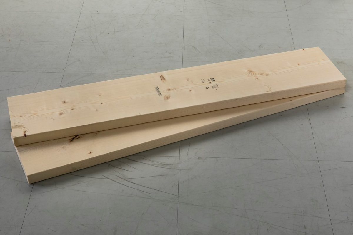棚板になる2×10材。長さ122㎝にカットしたものを2枚用意する。約1050円