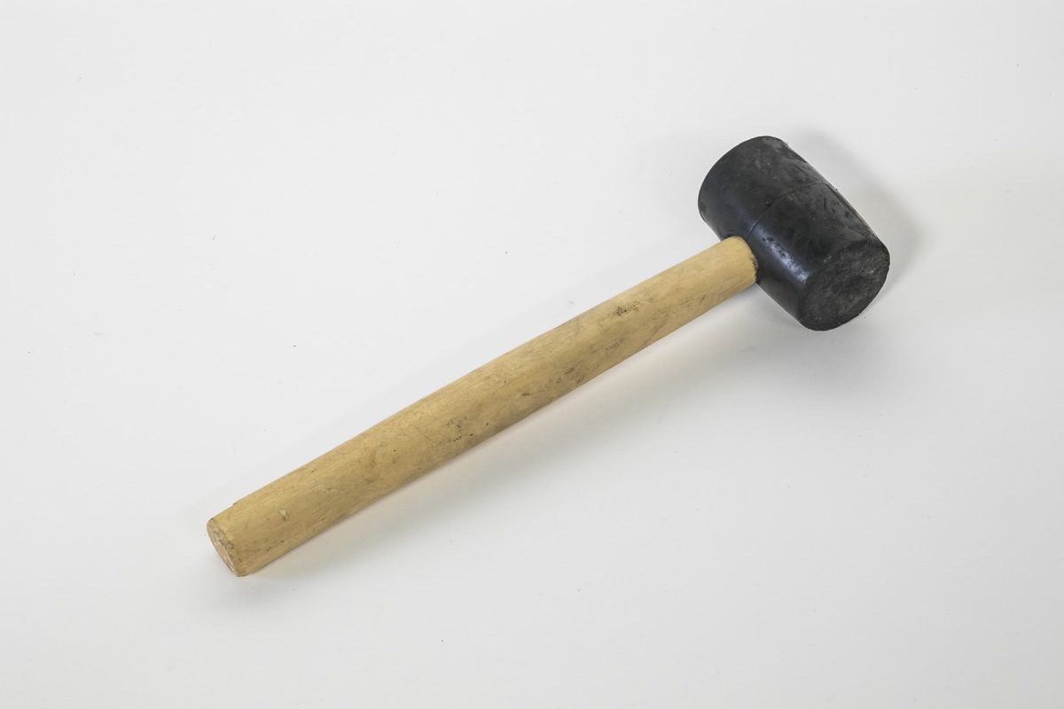 塩ビパイプで脚を組み立てるときに使うハンマー。傷が付かないようにゴム製を使うべし。