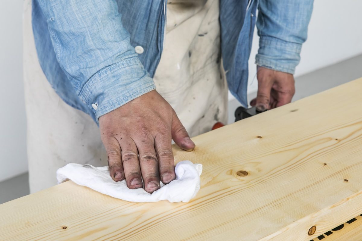 1時間ほど乾燥させたら、余分なオイルをウェスで拭き取る。ウエスがない場合は、タオルでもOK。
