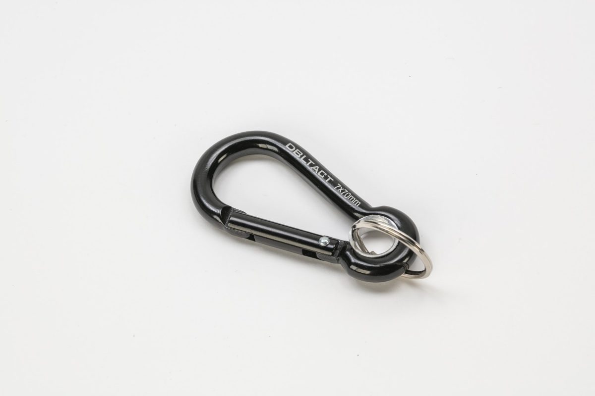 ランタンを吊り下げるためのカラビナ。取り外しがしやすく、折り畳んだときも邪魔にならない。約400円