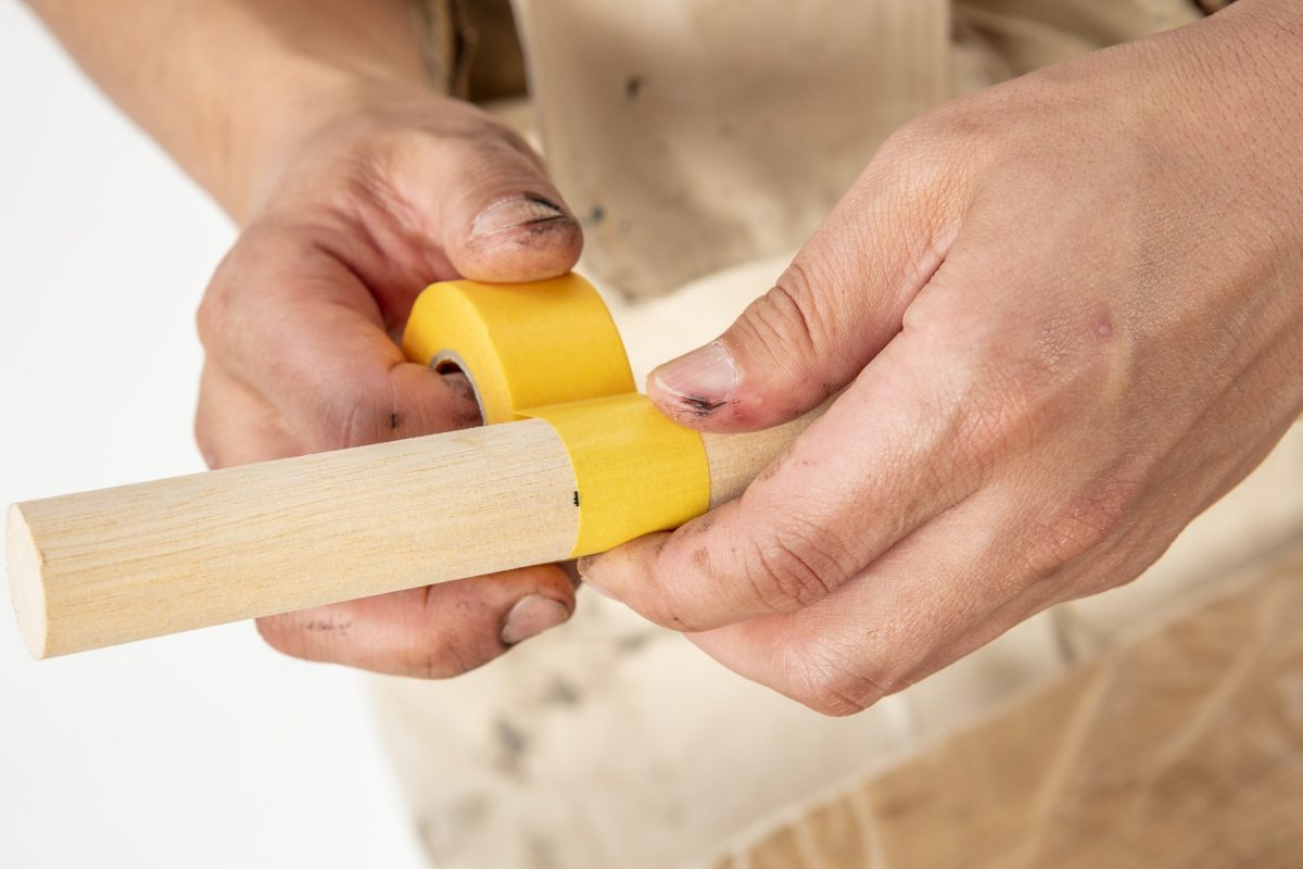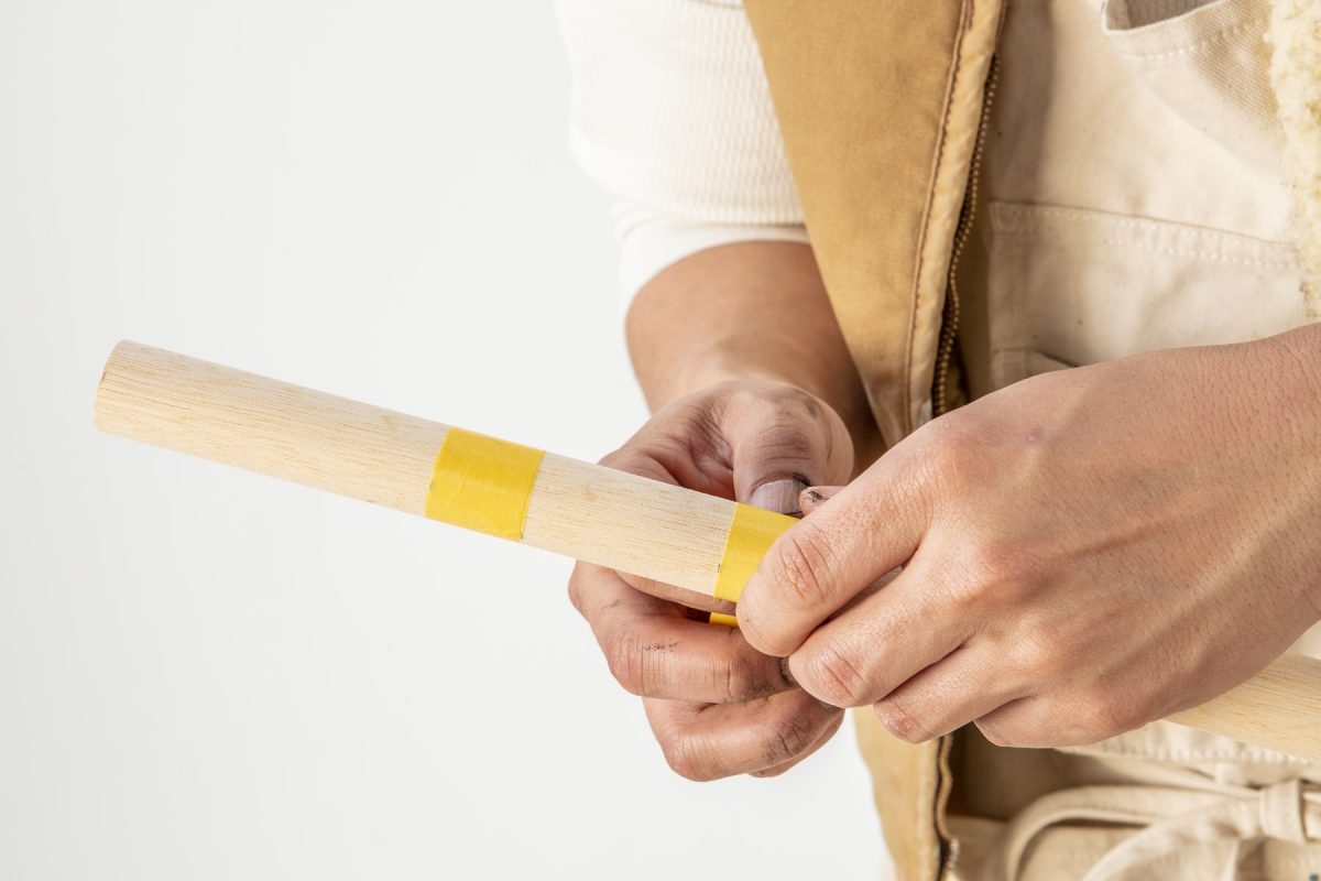 今回使用するマスキングテープは、12㎜幅のもの。まず先端から9㎝のところにマスキングテープを貼り、さらに
