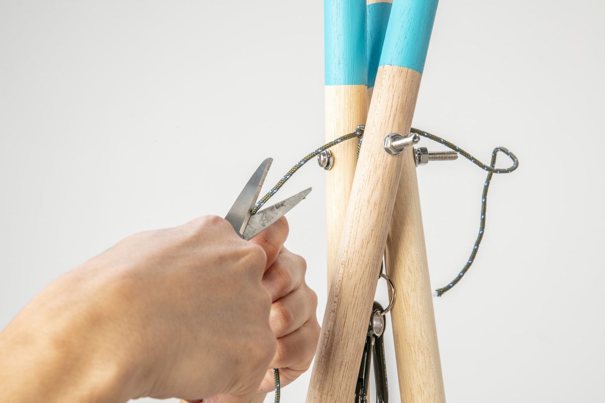 制作のポイントは、長めのネジを駆使して3本の丸棒つなげる工程。一見複雑な工程に見えるが、コツさえ掴んでしまえば簡単だ。また目印となるペイントにも注目だ。今回はホルダーの先端のみペイントしたが、全体を塗ってもOKだ。さぁ、キャンプの新しいギア作りに挑戦!