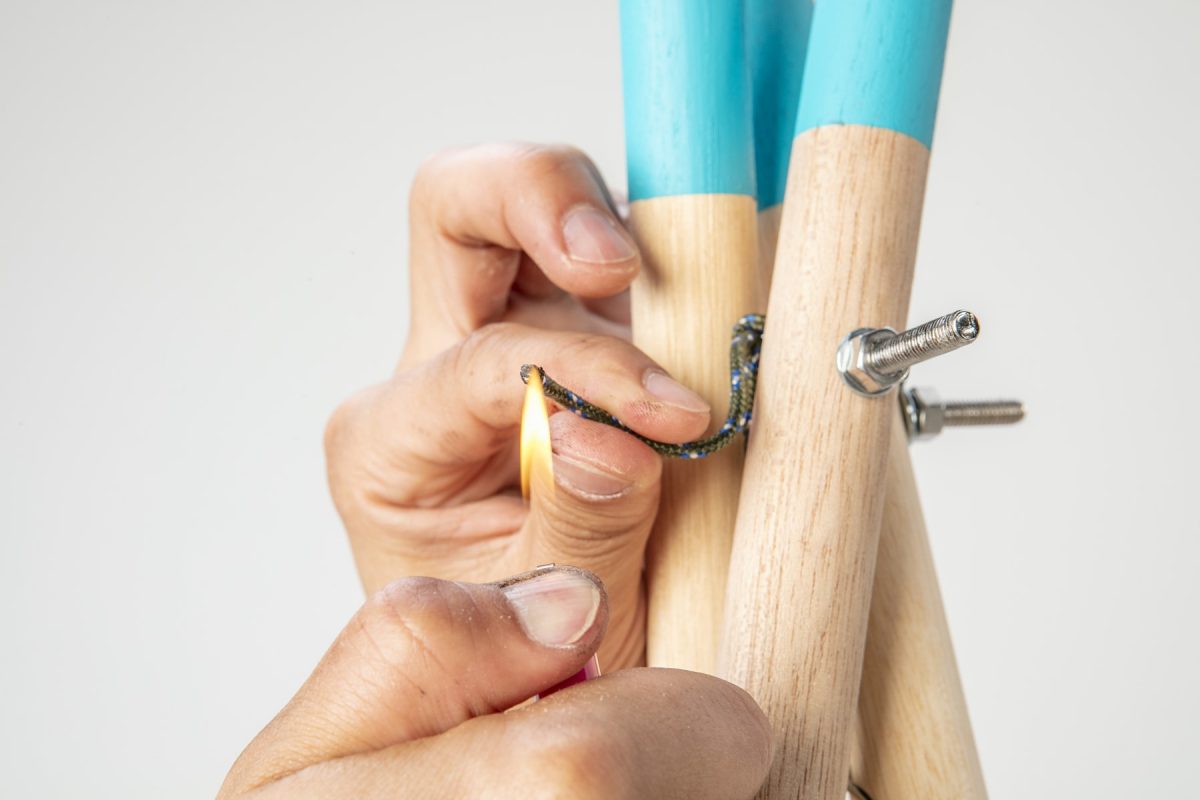カットしたパラコードの先端を火で炙り、ライターの角などで先端を潰す。