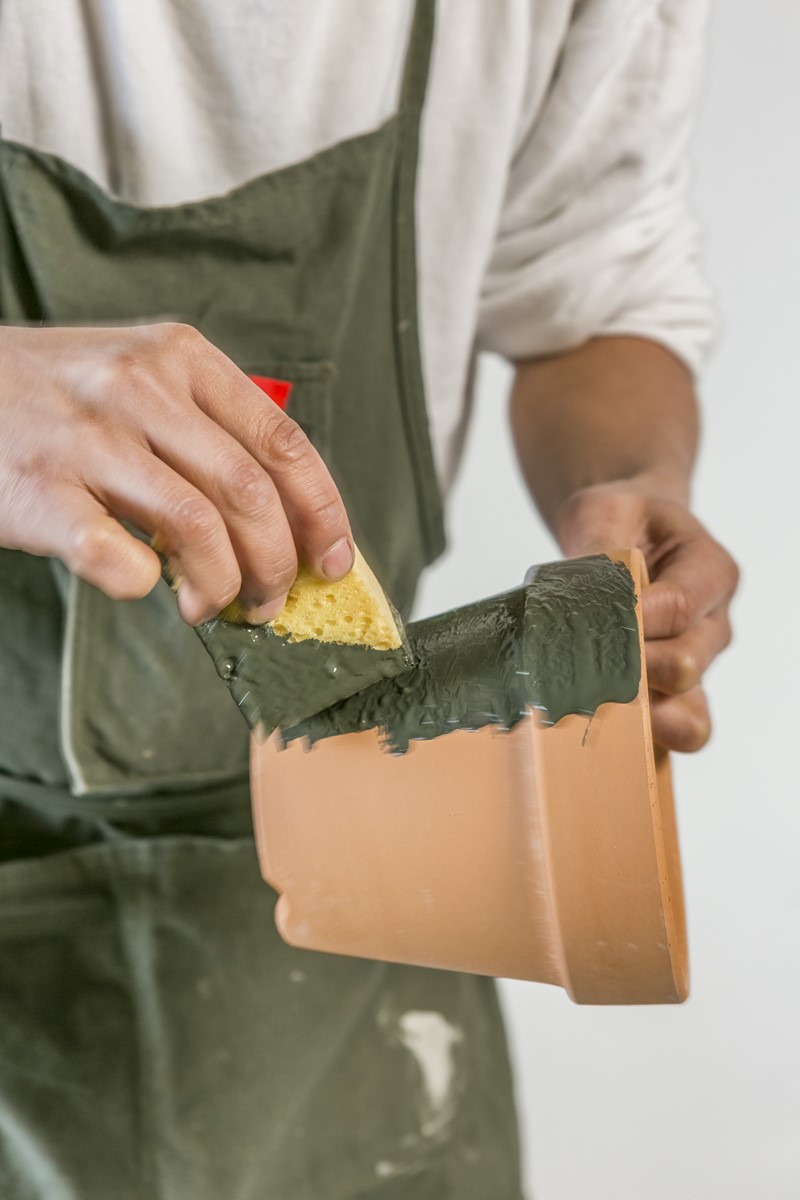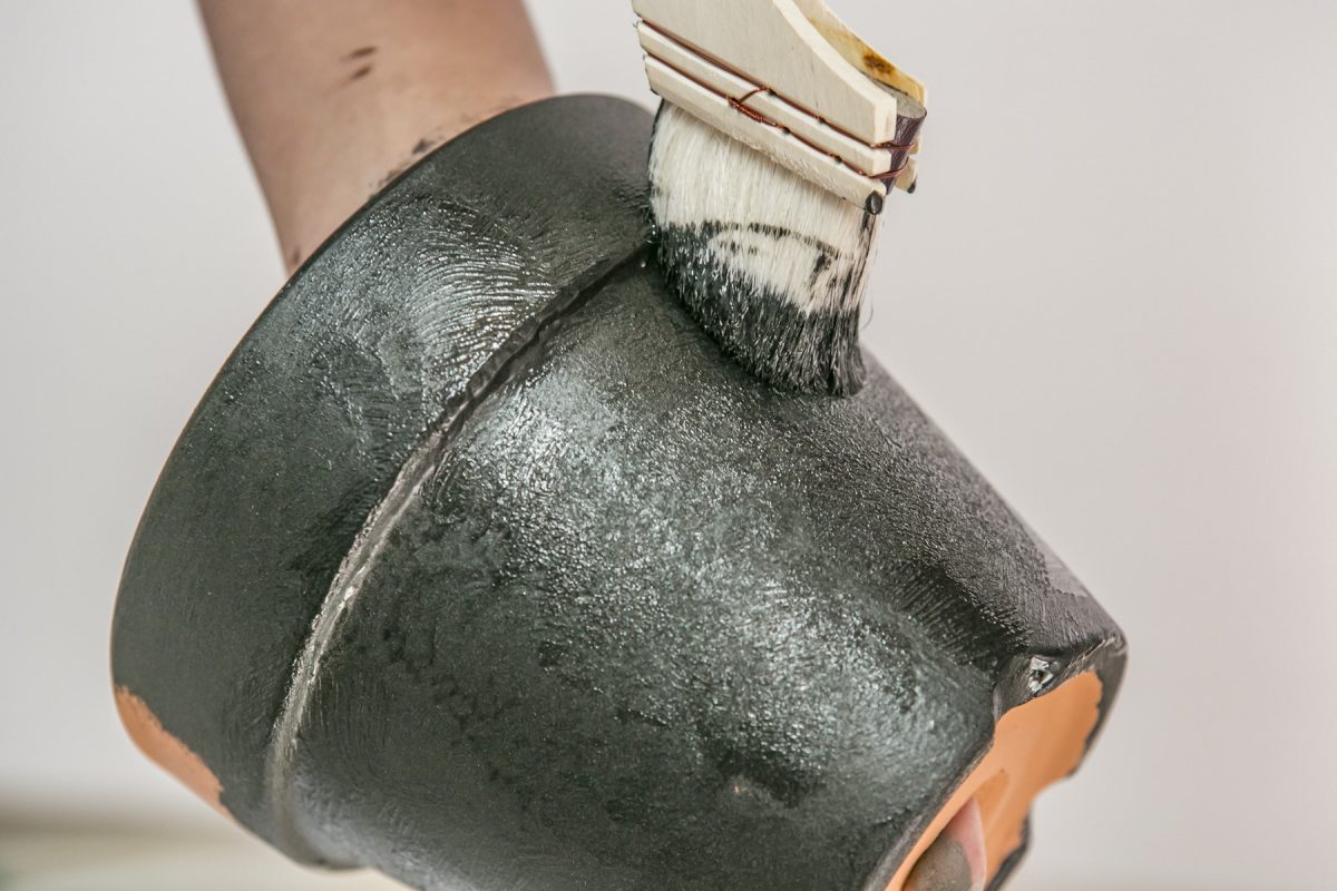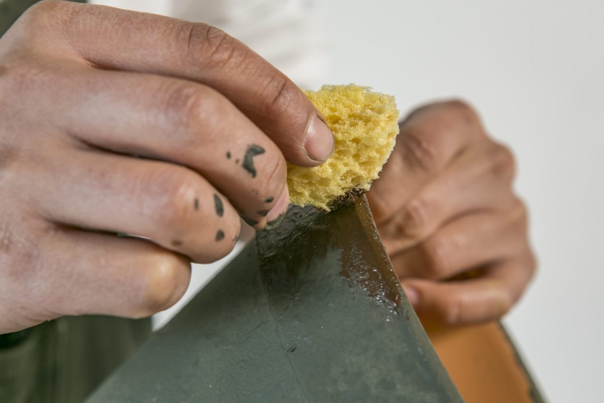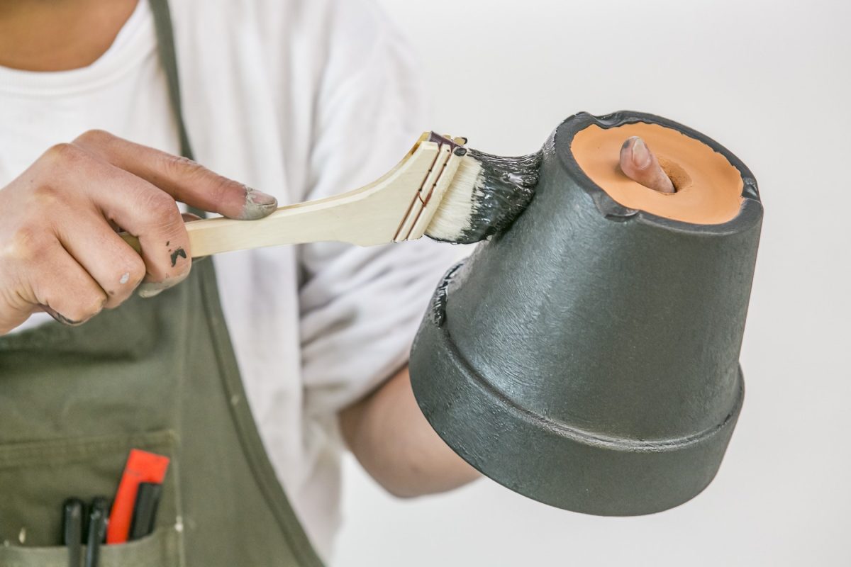 アイアンペイントは刷毛を使う。スポンジと同じように、トントンと叩きながら塗ることで、ザラッとした質感になる。