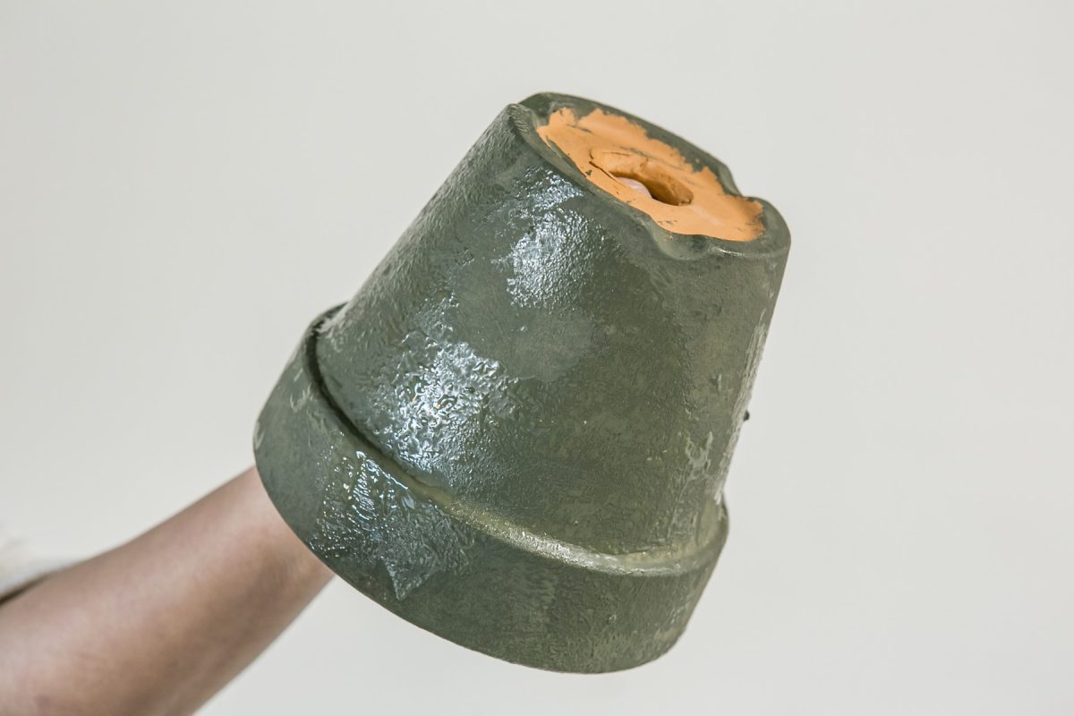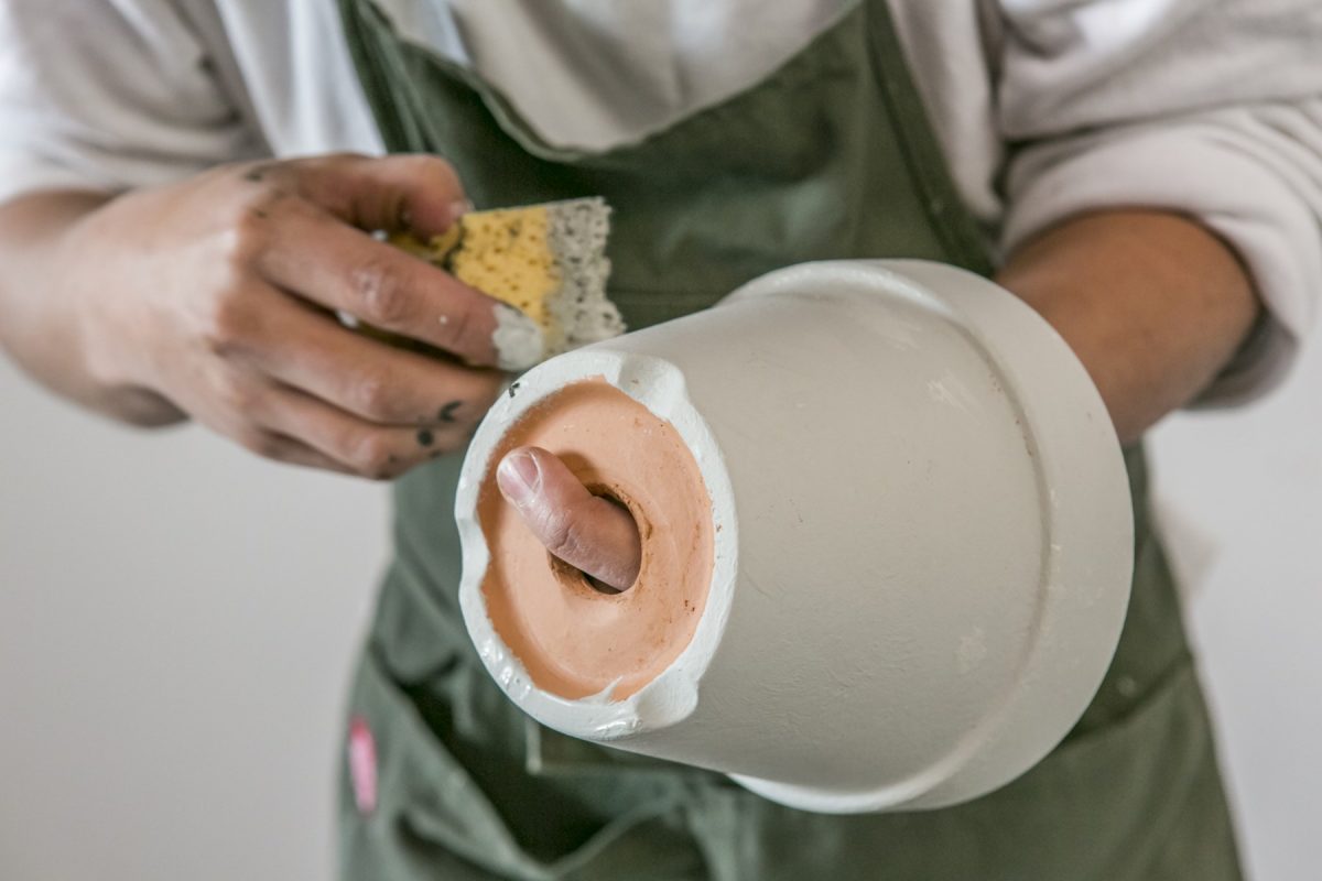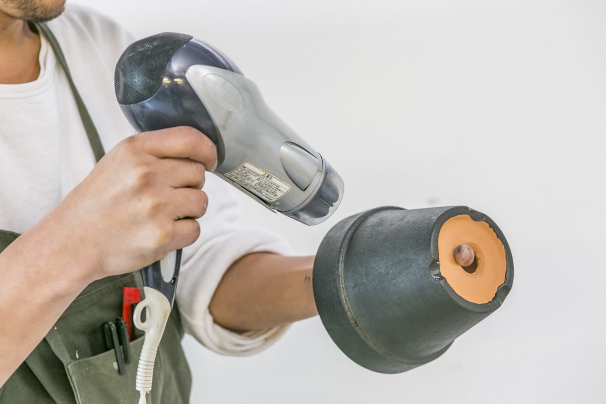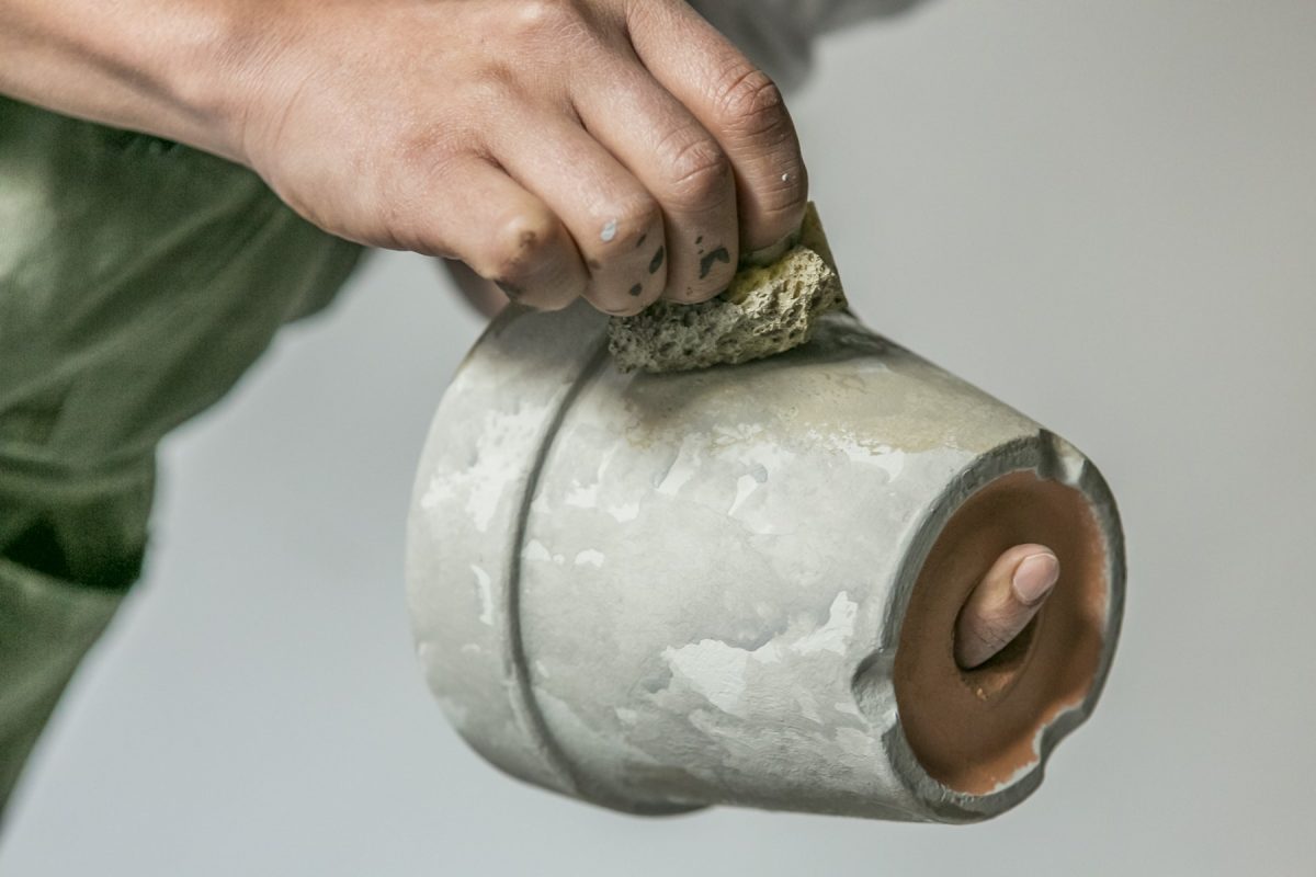 アイアンペイントは刷毛を使う。スポンジと同じように、トントンと叩きながら塗ることで、ザラッとした質感になる。