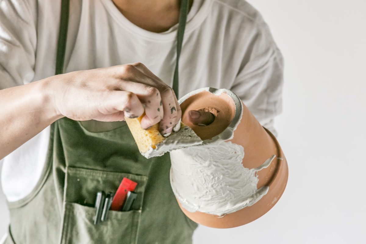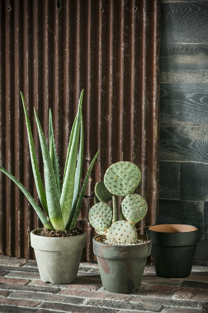 そこで今回は、素焼きのプランターをミリタリー風、セメント風、鉄風にペイントしてみた。ポイントはスポンジや刷毛でポンポンと叩くように塗ること。表面がザラッとした質感になるので、より本物っぽく見えるのでおすすめだ。