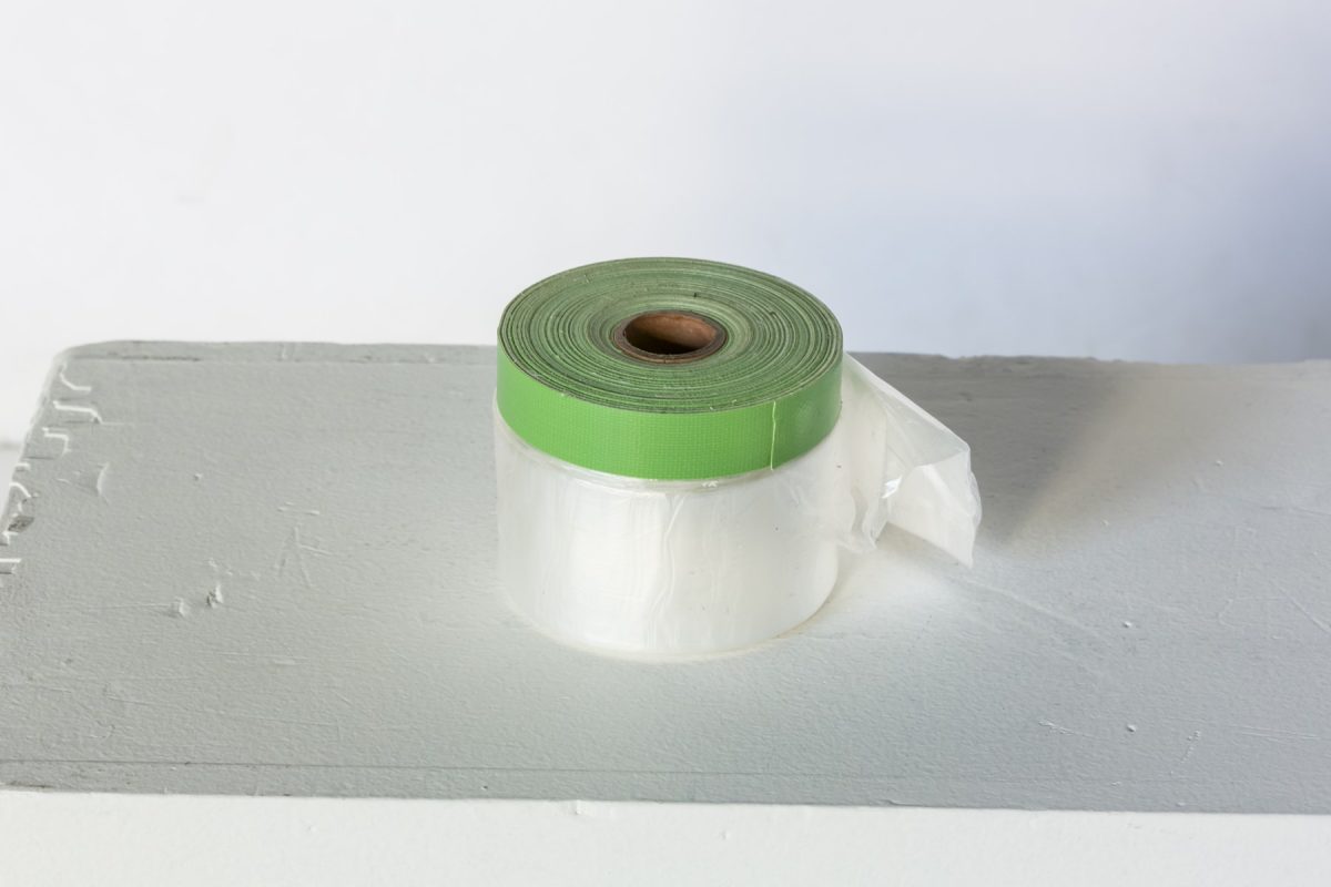 塗装するときに下に敷く布コロナマスカー。布テープ付きで、壁にも貼れるのでとても便利だ。約200円〜