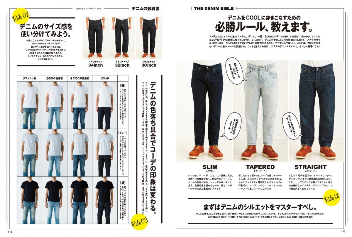 これまでに幾度となくデニムを特集してきた雑誌ライトニングだからこその、デニムの極意をお届け。選び方から着こなし方、ロールアップの仕方まで、絶対に押さえておくべきポイントを盛りだくさんで紹介する。これさえ知っていれば、大人メンズのデニムの着こなしは完璧!