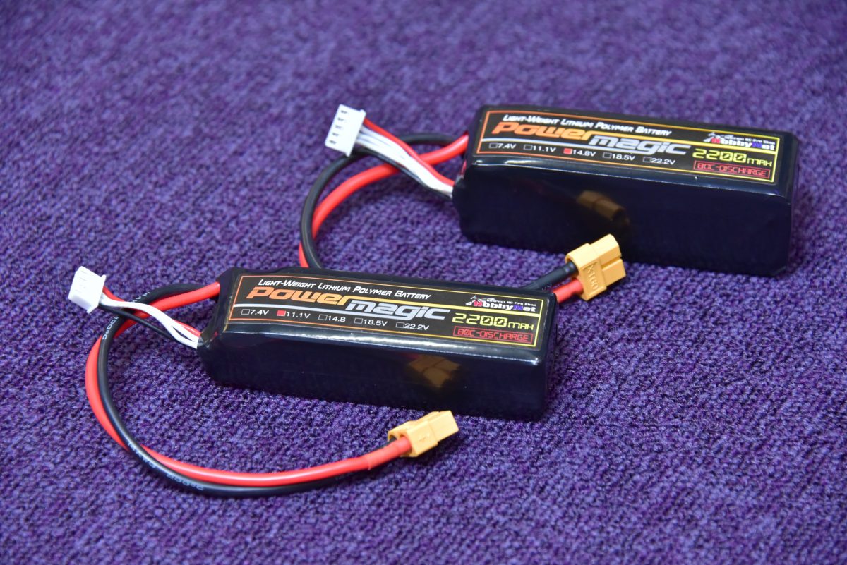 ドローンサッカー用の専用Li-Poバッテリー。こちらも公式サイトで購入可能。よりハイパワーの14.8V仕様もある(上級者向け)。