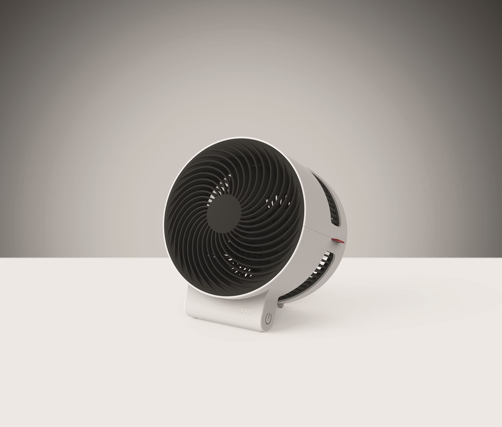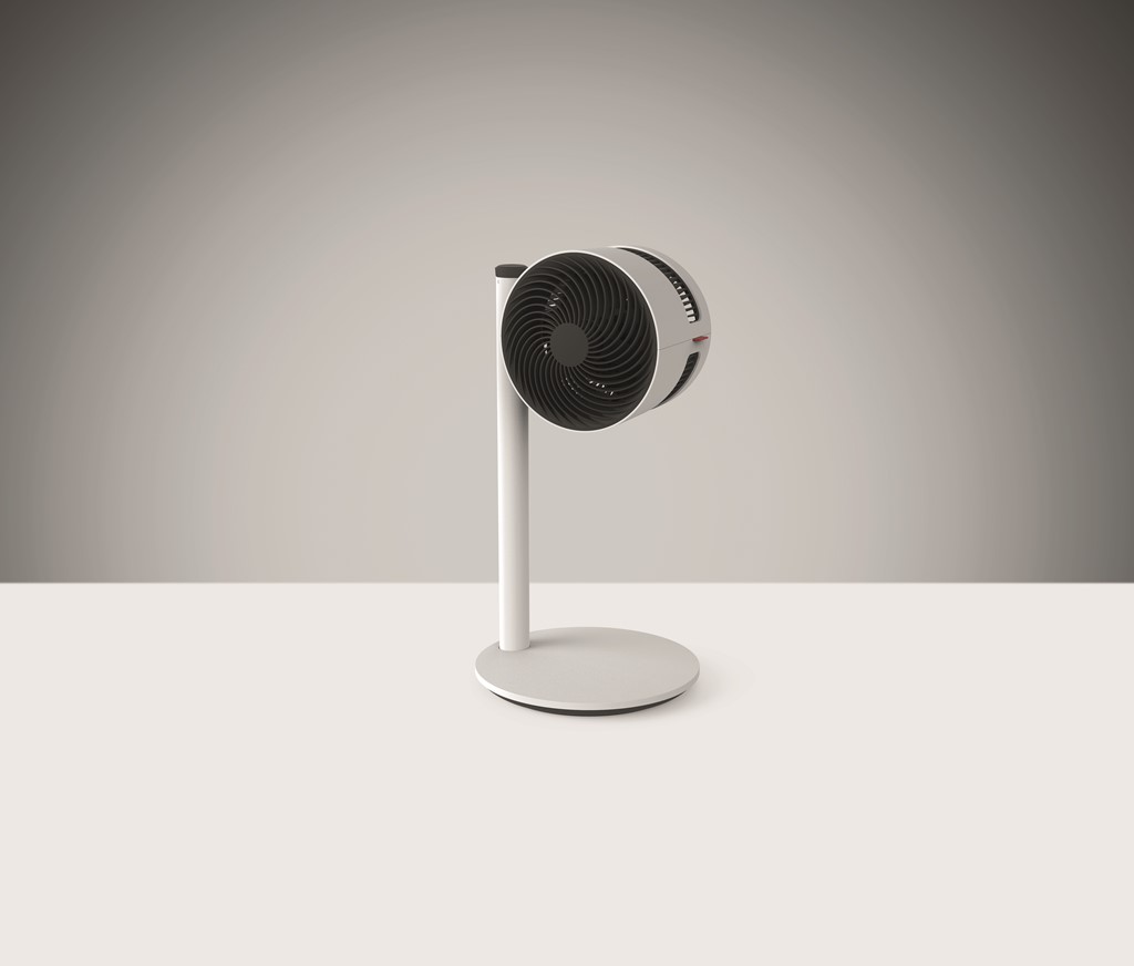 サーキュレーターといえば、床置きタイプが一般的だが、このボネコは脚が付いた珍しいタイプ。実際に使ってみたけど、高い位置にあるファンが思った以上に調子がいい。チェアに座った時にも身体に程よく風が当てられるので超快適。ファン本体は垂直方向にも向けられるので、床に溜まった冷たい空気を循環するのも早い。