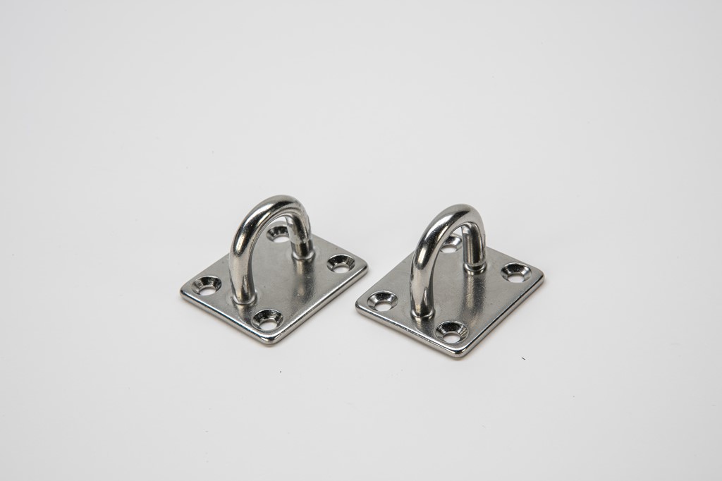 テーブルを吊り下げるときに使うチェーンを接続するためのリングプレート。耐荷重の高いものを選ぶのがコツ。各約800円