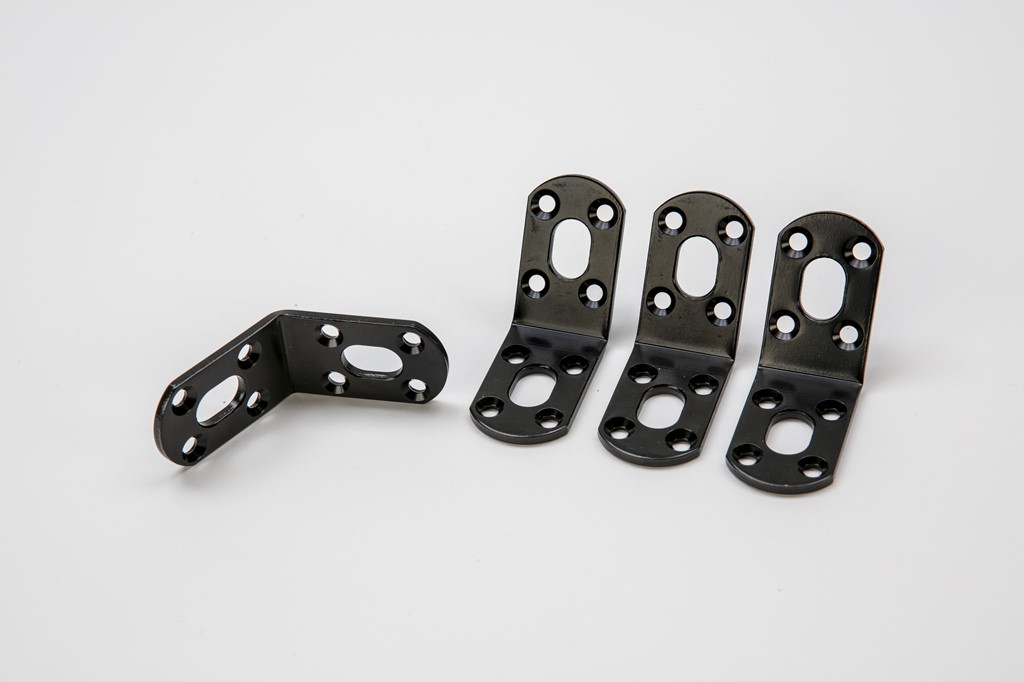 テーブルとチェーンを繋げるためのアングル。カラビナを付けるので、中央に穴が空いているタイプを4つ用意。各約200円
