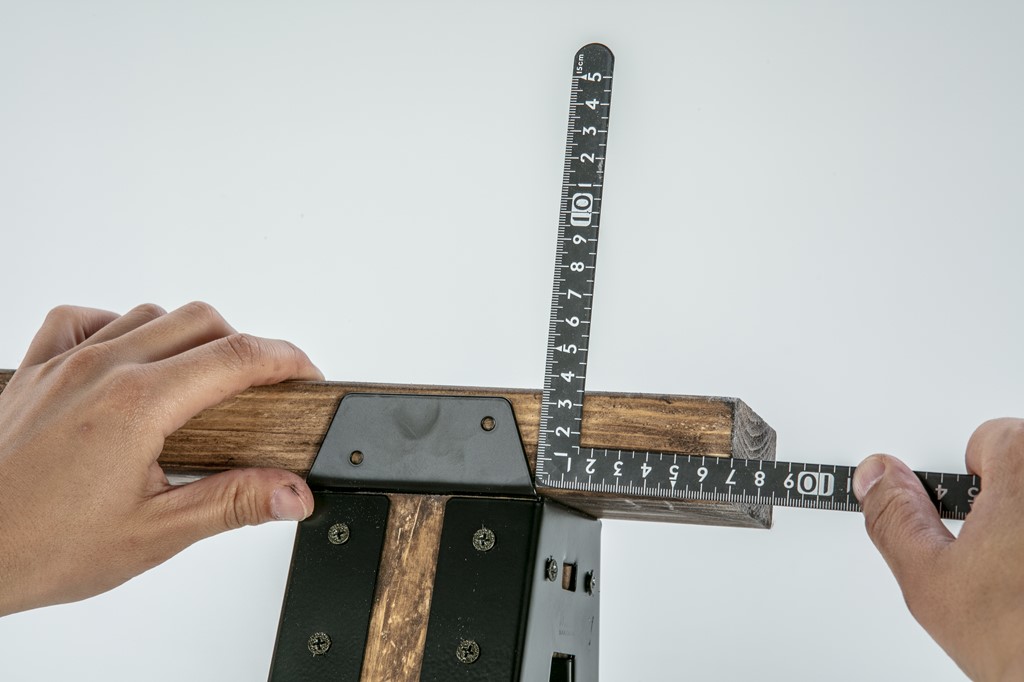 天板を装着する。今回使用するソーホースブラケットは天板の装着もできる仕組み。両端の幅を合わせて天板を固定する。