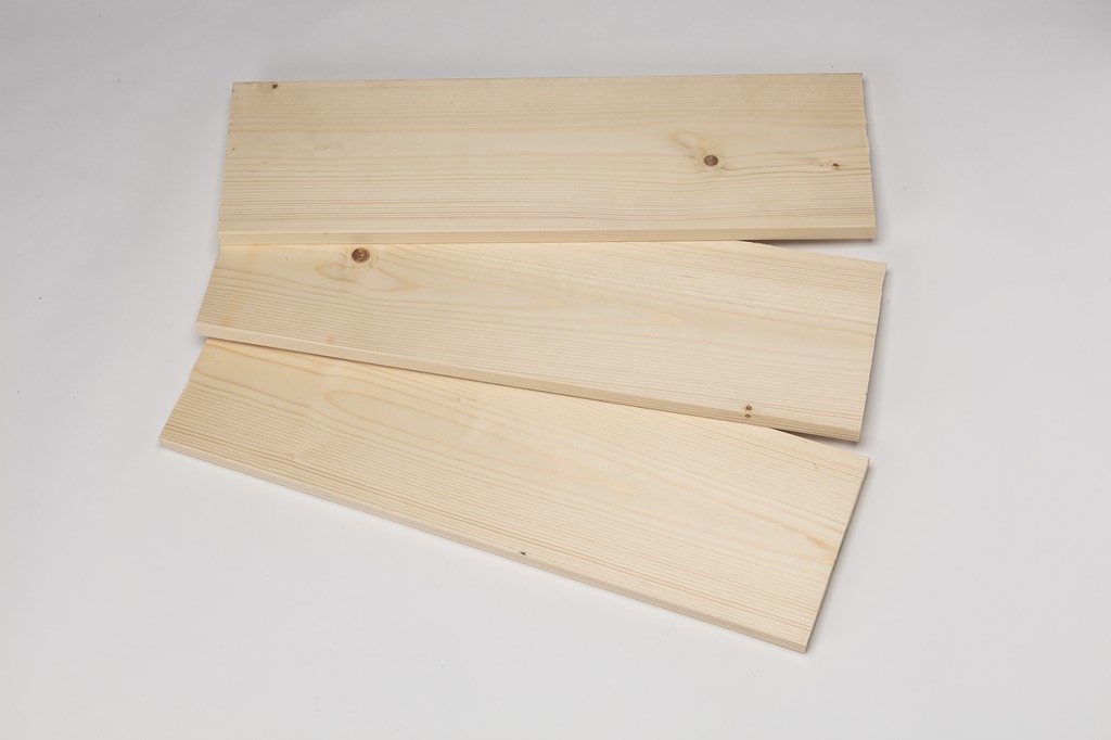 今回は3段の棚を制作するので、600㎜にカットした1×8材を3枚用意。設置したい棚の数だけ用意してOK。約1200円