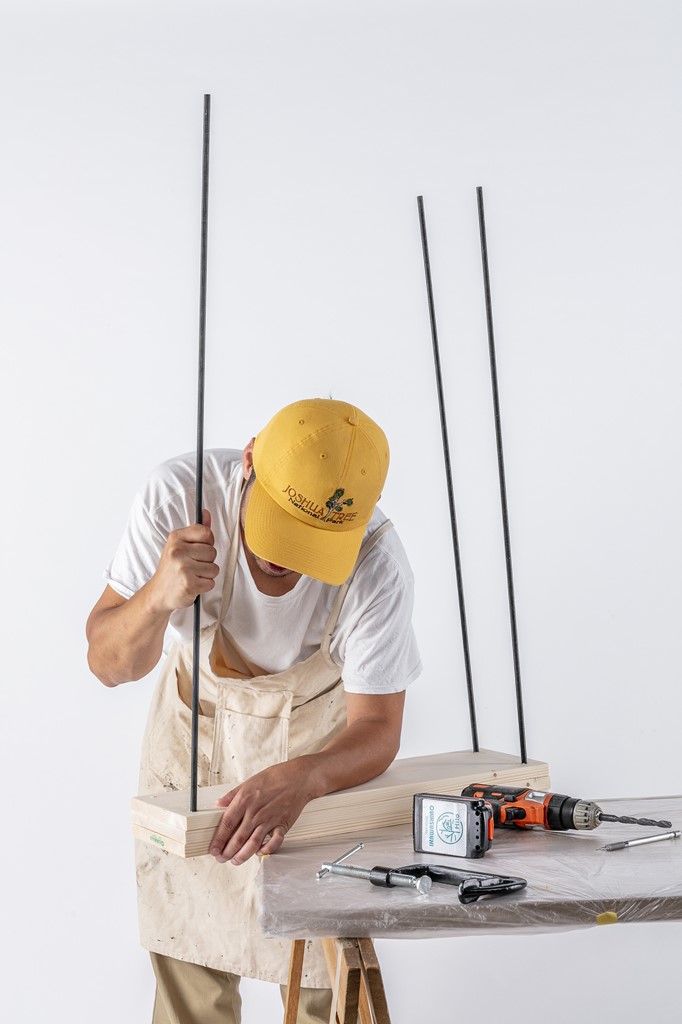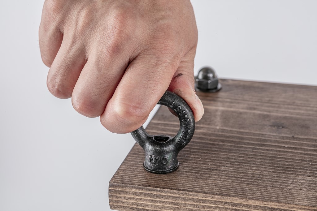 全ネジに木材をはめ込むときにあると便利。穴と全ネジのサイズがぴったりなので、木材の四隅を軽く叩きながら定位置に設置する。