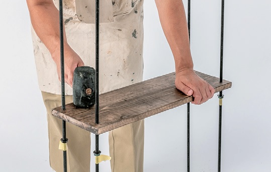 2段目を全ネジに通す。ゴムハンマーで軽く叩きながら少しずつ通していくのがおすすめだ。