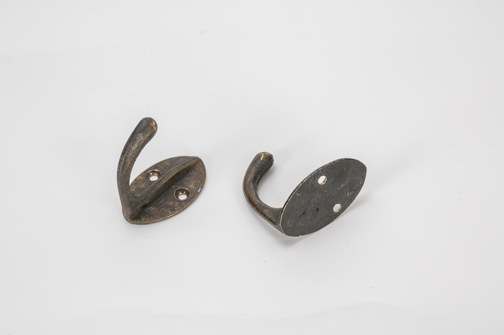 木材に装着するフック。今回はアンティーク調のものを使ったが、好きなモノを用意しよう。また掛けたいものによって大きさを選ぼう。