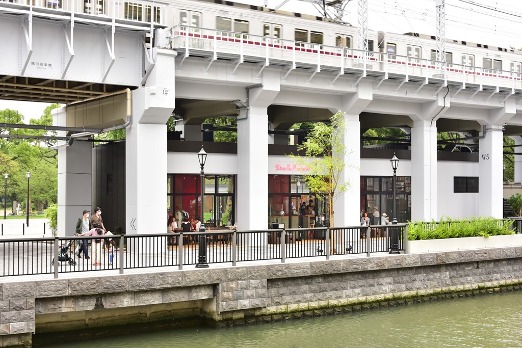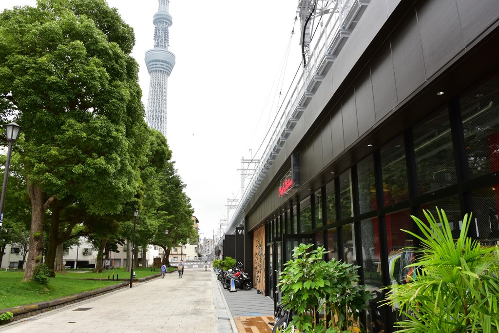 川の反対側は、東京ミズマチに合わせてリニューアルされた隅田公園。店舗からはスカイツリー、川も眺められるグッドロケーションだ。