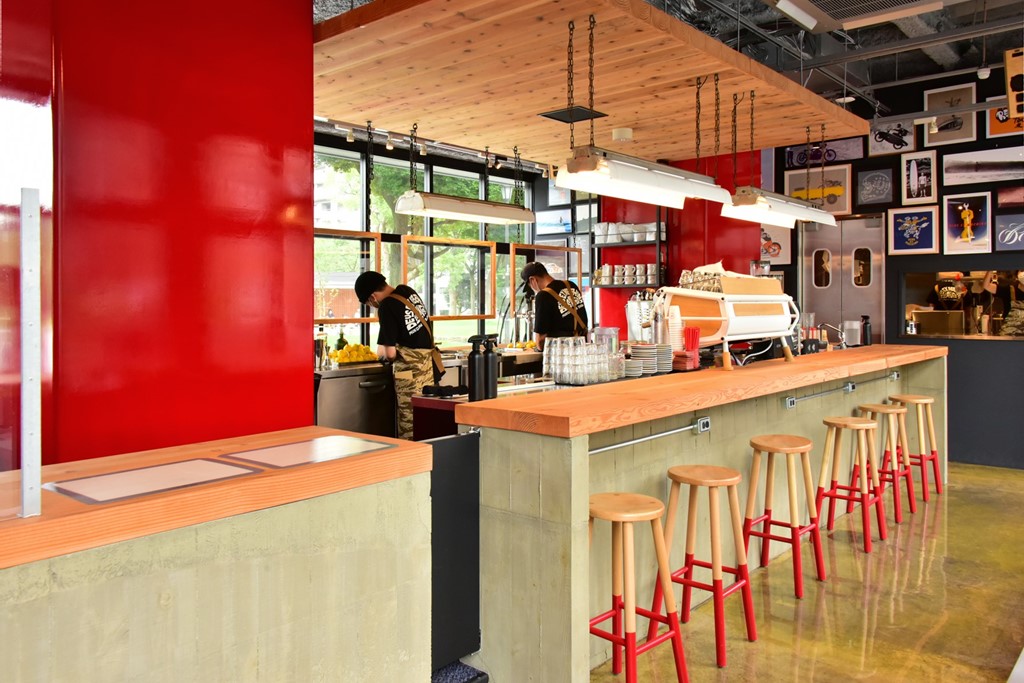 そんなデウス エクス マキナの新たな店内は、随所に赤を使っているため、浅草エリアならではの、どこか日本的な印象を受ける。またカフェスペースは今まで通りコーヒーやビールなども楽しめ、さらに平日はフードとドリンクがセットになったランチメニューも提供し、今後はサマースイーツとして自家製プリンやクッキー、シェイクなども登場する予定となっている。ちなみに後ろの壁に飾っているアートも購入可能だ。