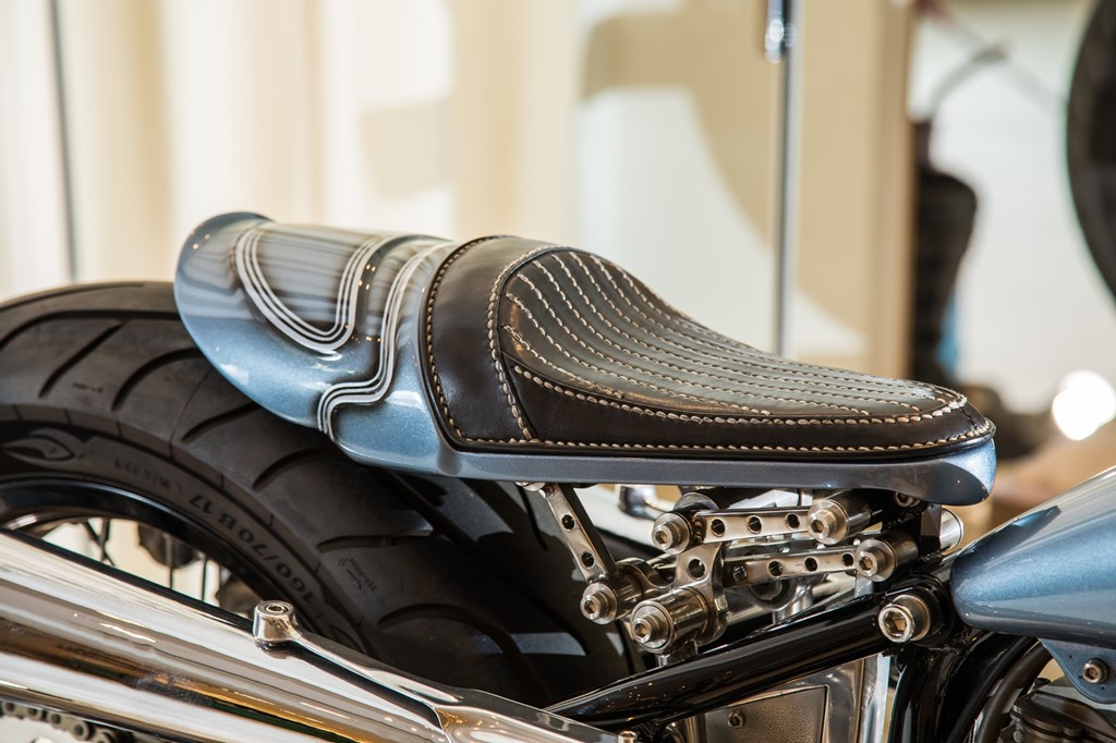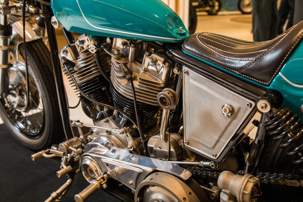 国産車や欧州車を手掛けることの多い平和では珍しいショベルヘッドのカスタム。すべてのパーツをワンオフで製作しており、木村さんの技術がふんだんに詰め込まれた一台。2015年のホットロッドカスタムショーにも展示された。