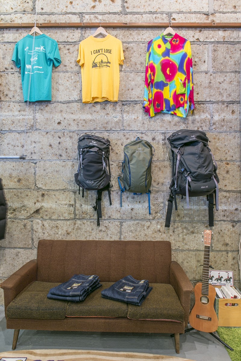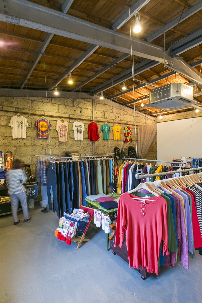 洋服や雑貨を扱うため、大谷石特有のもろくて細かい粉じんは大敵だったという。そこでリノベーションの際、壁一面にニスを塗装した。作業は大変だったというが、大谷石がもたらす美しい雰囲気は何物にも代えがたかったそうだ。もちろん大谷石は店内の商品展示にも有効活用されている。