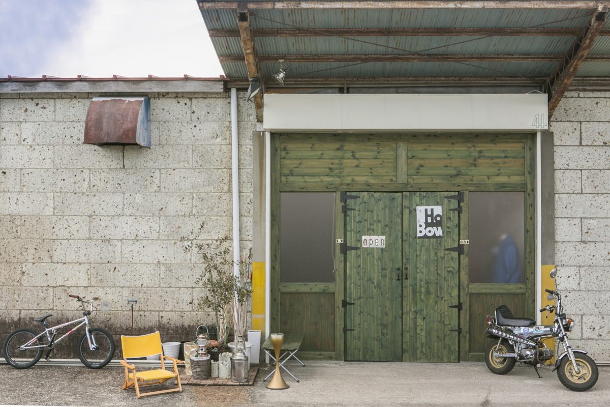 大谷石倉庫群の雰囲気に惹かれ、ポーラスに出店を決めたというセレクトショップ「HoBow」。その店舗は緑色に塗られた美しいトビラが目印。