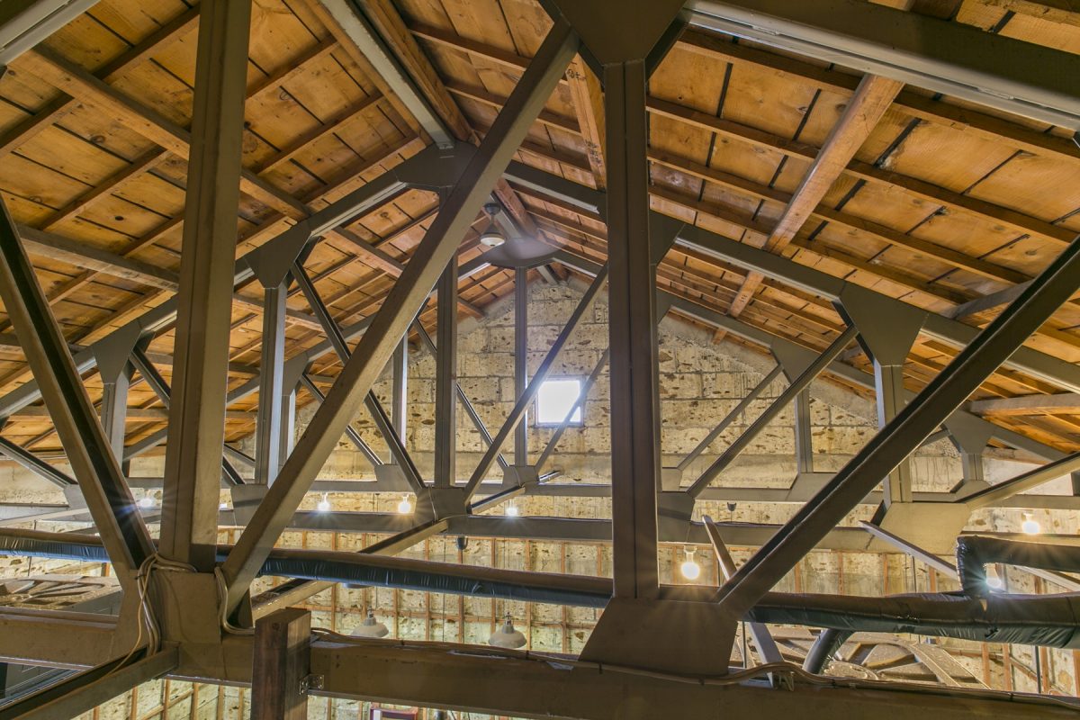 それぞれ大きなひさしを持ち、広い敷地の中、L字に囲むように配置されたこの場所は、寂れた倉庫群から華やかな店舗群へと生まれ変わった大空間。内装は基本的に大谷石むき出し、鉄骨むき出し、屋根下地むき出し。しかもよく見ると文字や数字が走り書きされ、かつての倉庫時代を物語る。しかしその荒々しさが逆にアジトのような、好奇心をくすぐる味わい深い雰囲気を醸し出している。