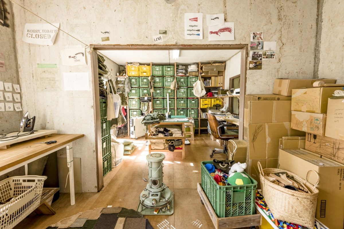 二間をひと続きにしたアトリエ。こちらは縫製を担当しているジェットさんのスペースになっている。