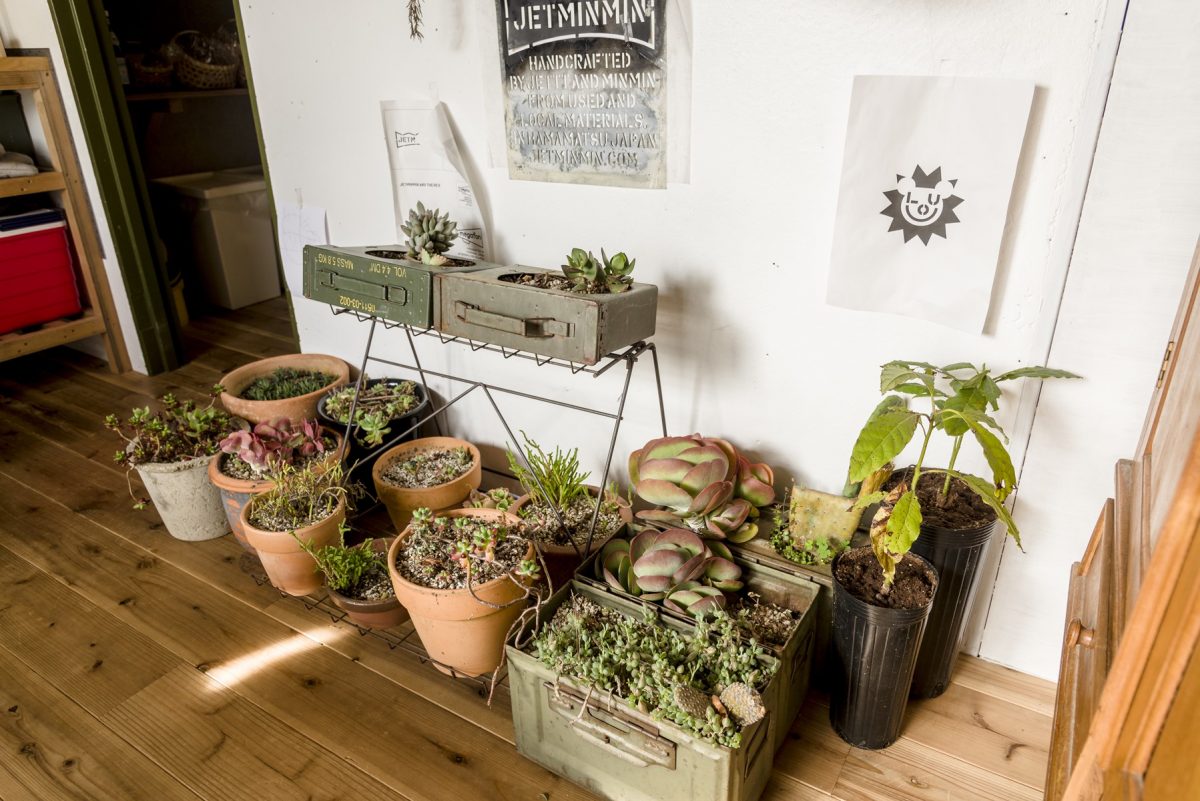 浜松を拠点にミリタリーテイストのプロダクツをハンドメイドで作っているジェットミンミン。2年半前に廃屋同然だったこの家を購入した。