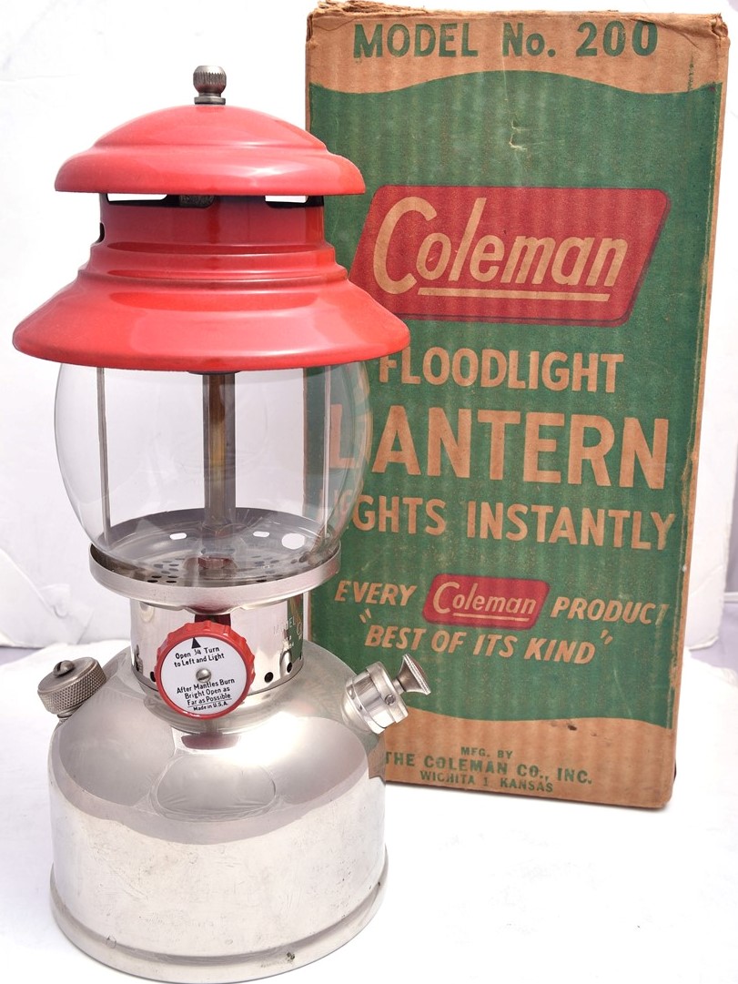 コールマンの200Aは、リーバイスで言えば501のようなもの。ヴィンテージのシングルマントルランタンが欲しいと思ったら、まずここから。1951年に登場し1984年に生産が終了する。