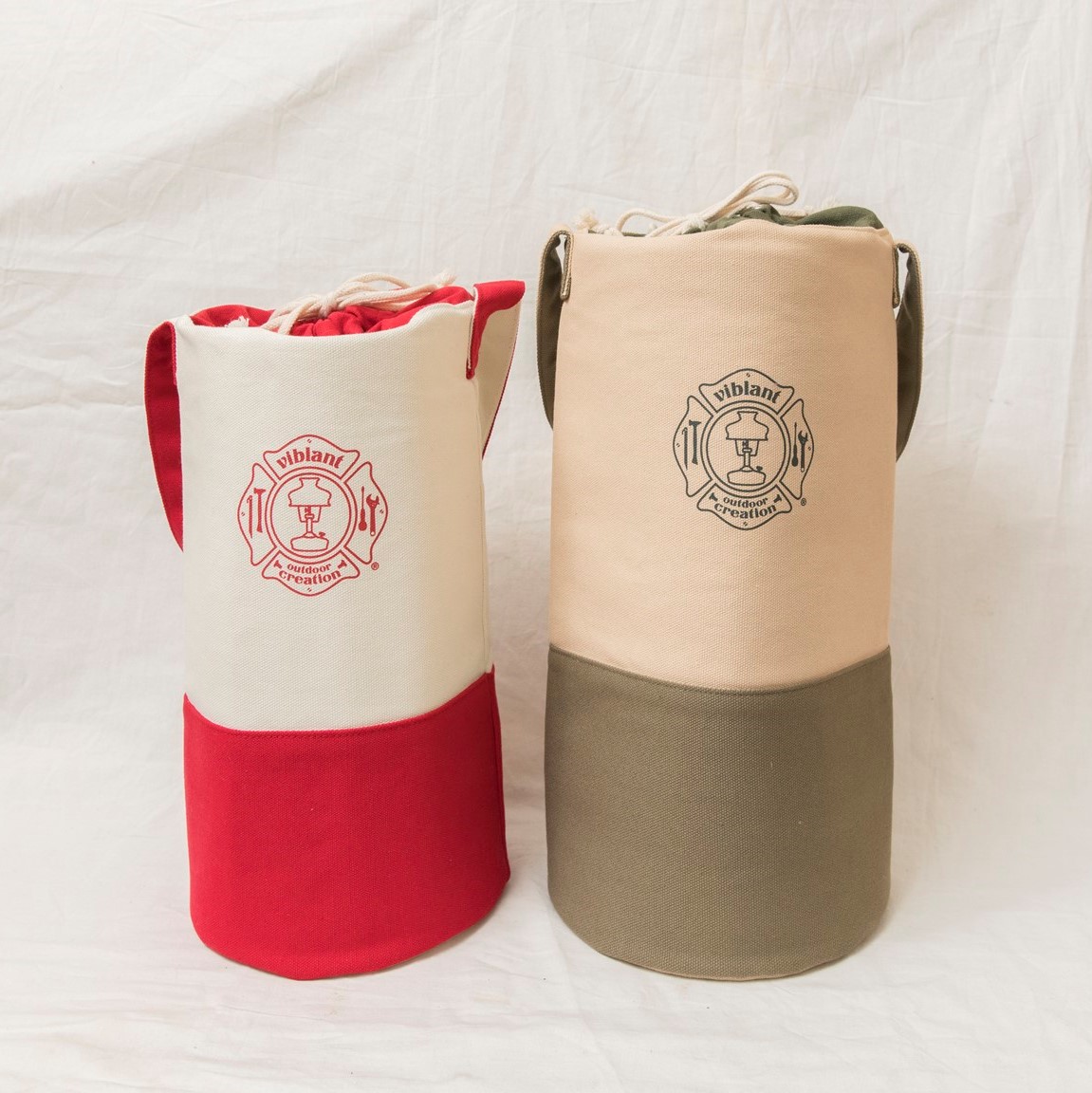 オリジナルで作ったキャンバス生地のランタンケースも販売。Mがワンマントル向け(5918円)、Lがツーマントル向け(6458円)