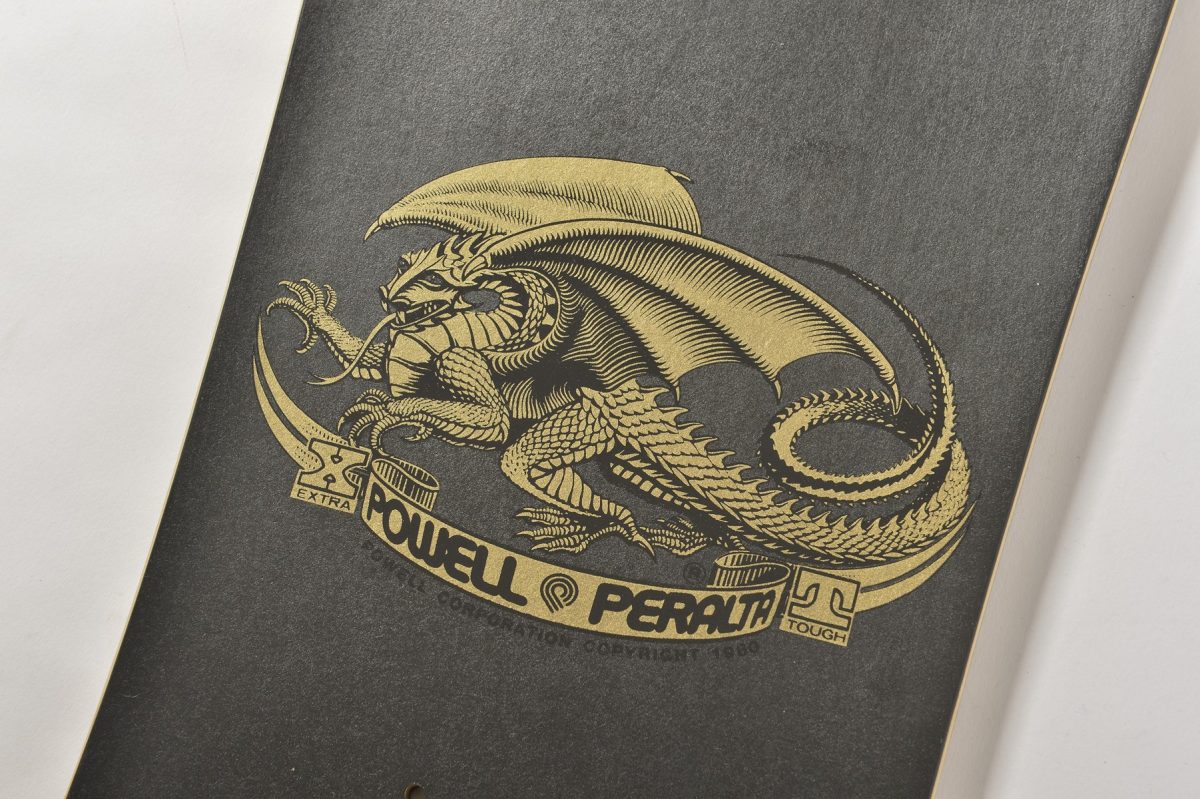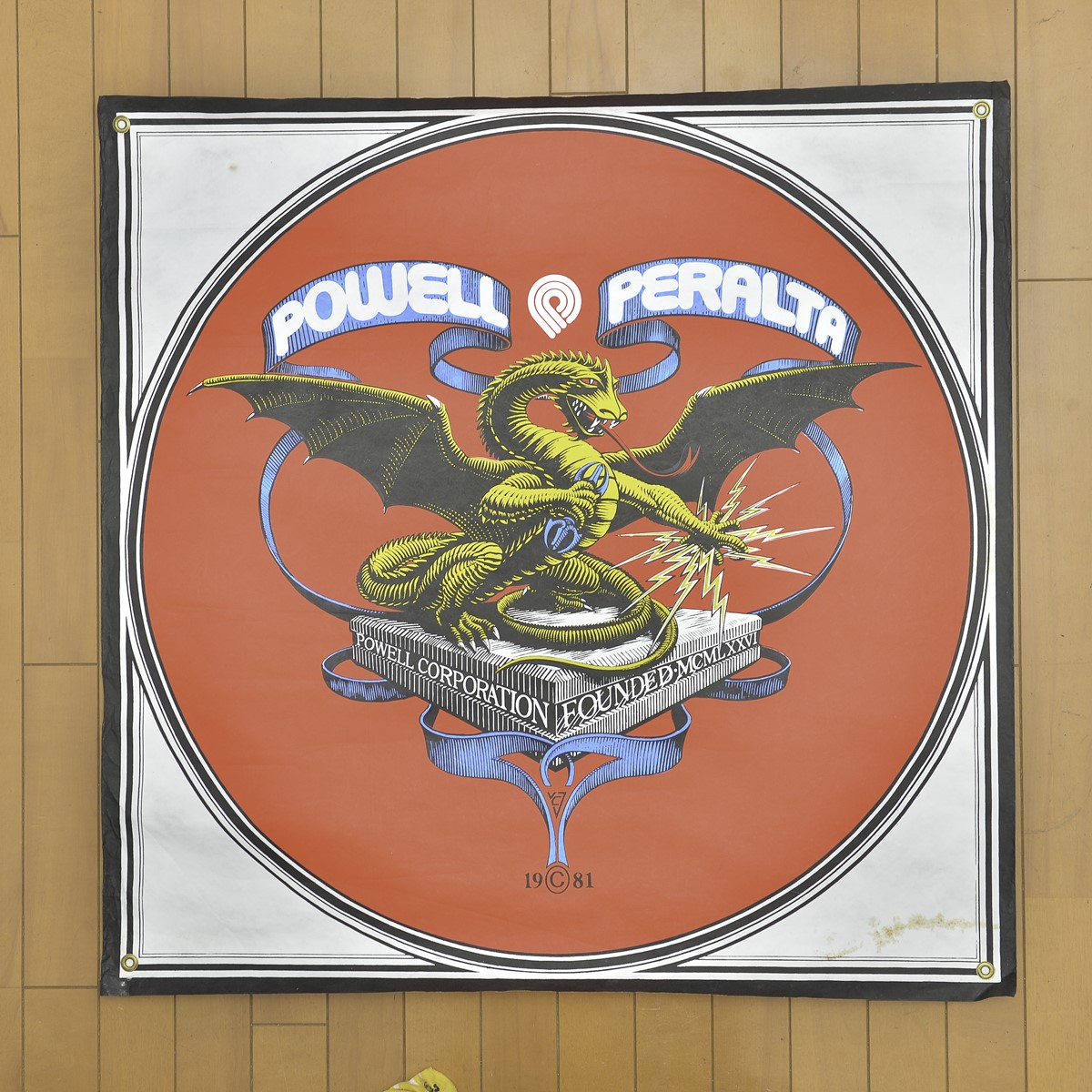1981年製のPOWELL PERALTA のデッドストックバナー。ヴァーナン・コートラント・ジョンソンのデザインで初期のキャバレロモデルと同じ龍がモチーフ。