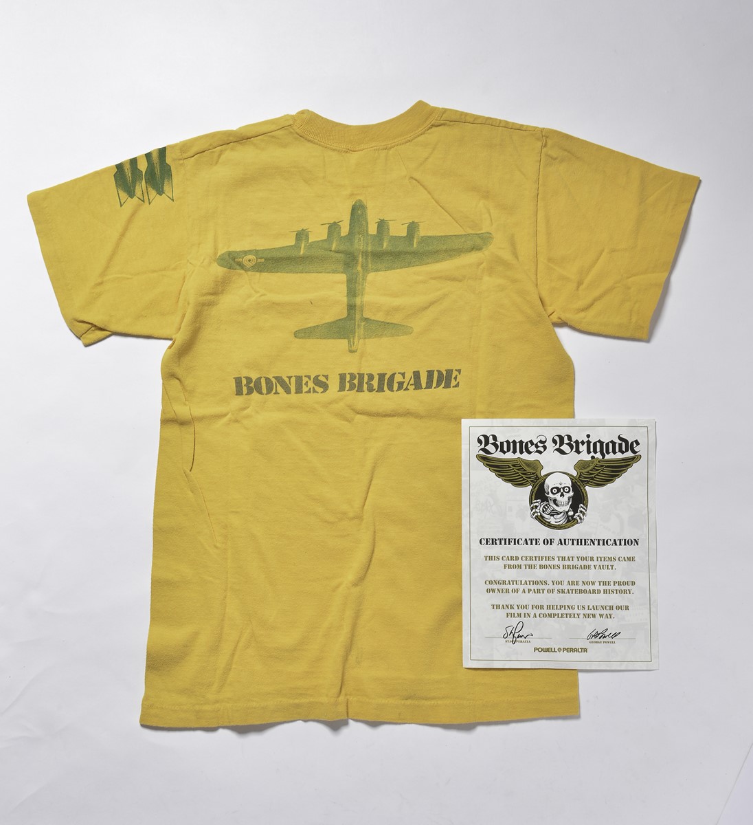 マイク・マクギルが16 歳の時にBONES BRIGADE 入りをしたことを記念して製作したTシャツ。サイドに置かれた証明書が価値の高さを物語っている。
