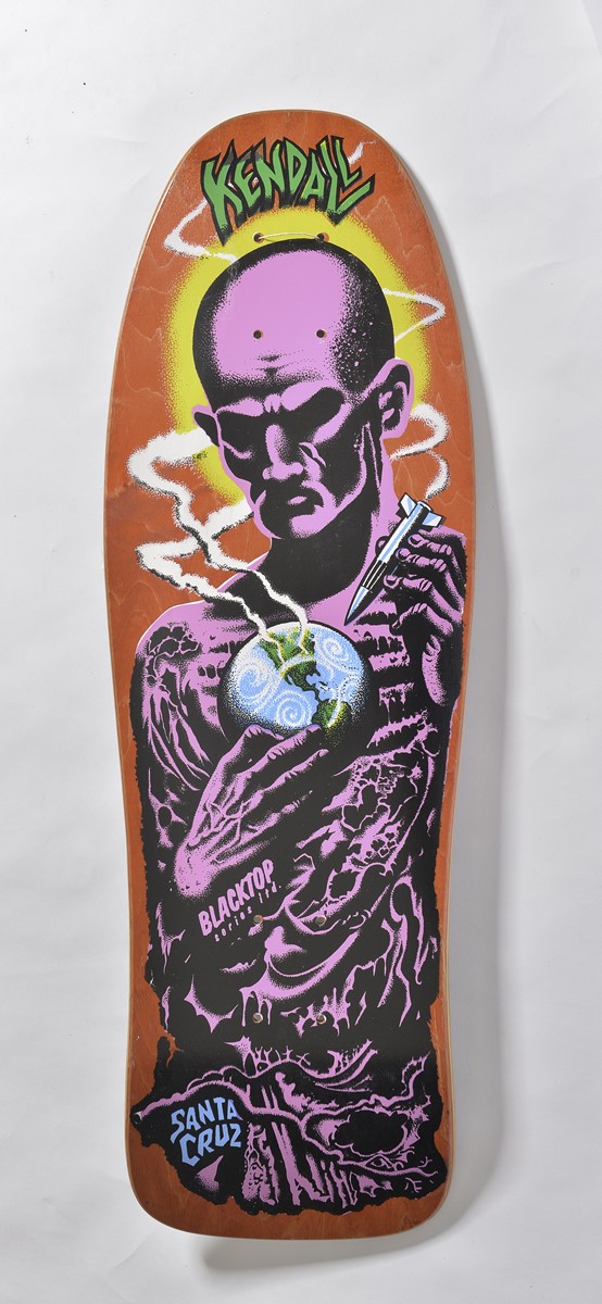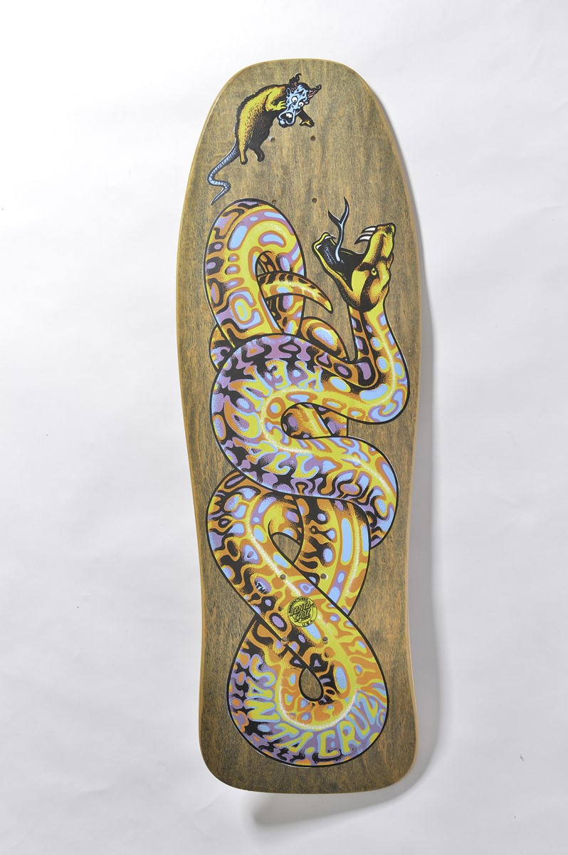 ジム・フィリップスとジャスティンフォーブスデザインのジェフ・ケンダルモデル。よく見ると蛇の柄にKENDALとSANTA CRUZ の文字が隠れている。