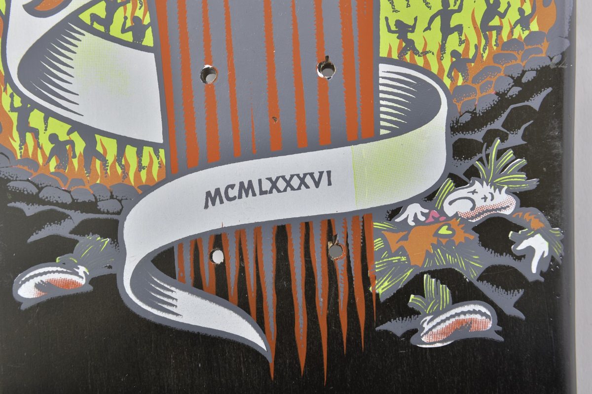 SANTACRUZ といえばジム・フィリップスだが、これはケビン・マーバーグによるデザイン。よく見ると炎がKNOXになっていたりと手が込んだグラフィック。