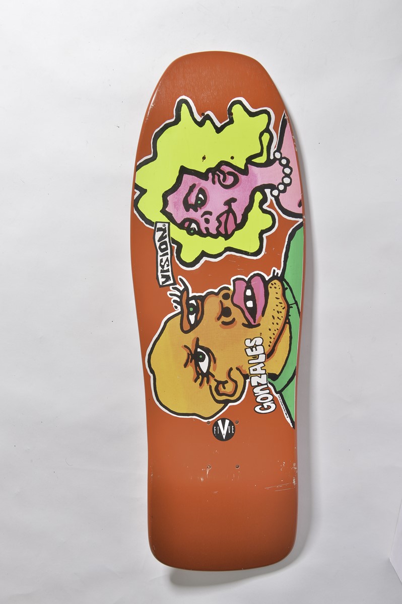 マーク・ゴンザレス自らがデザインしたデッキ。フロントには若かりし頃の本人が描かれている。当時から彼の独特な世界観は変わらない。