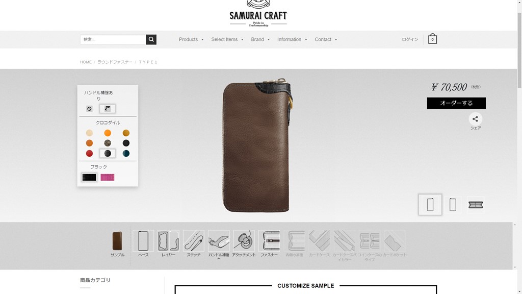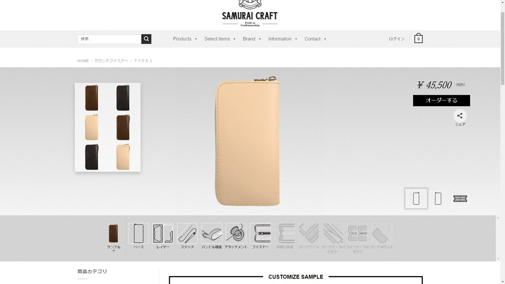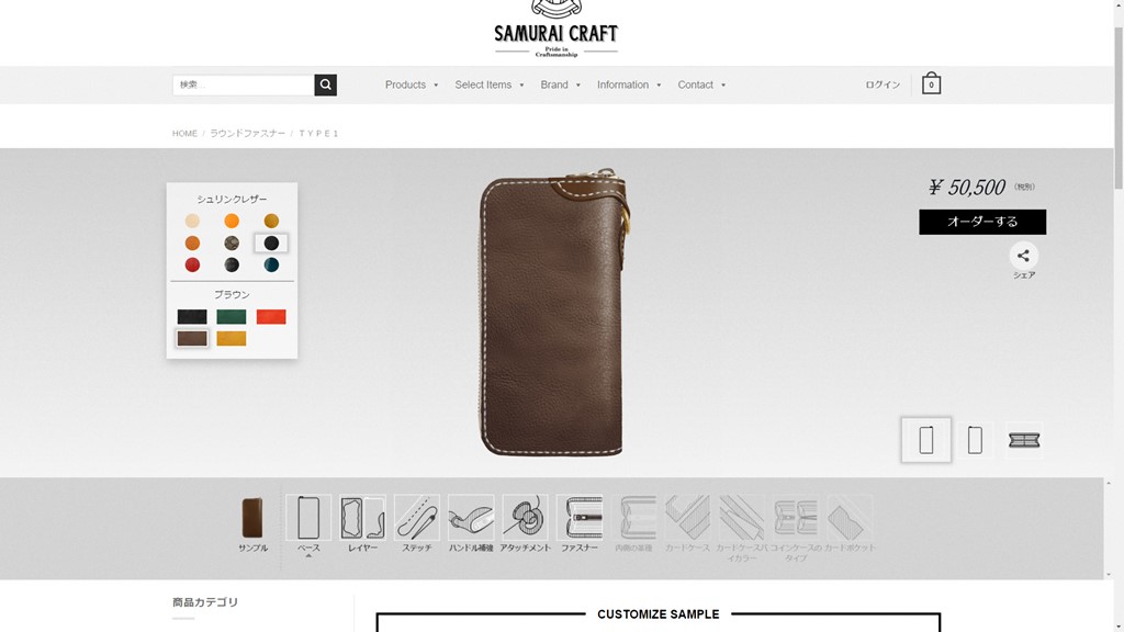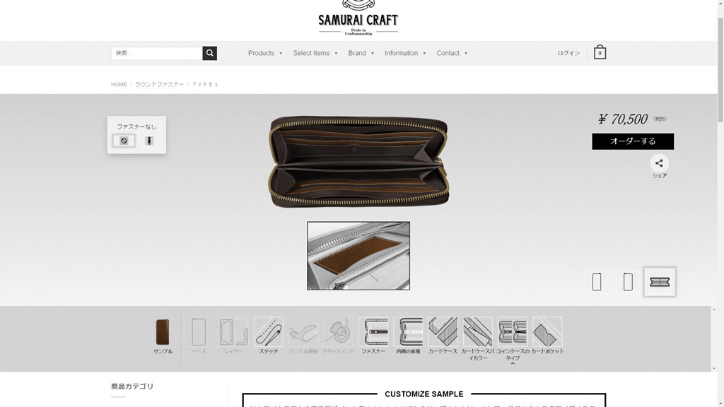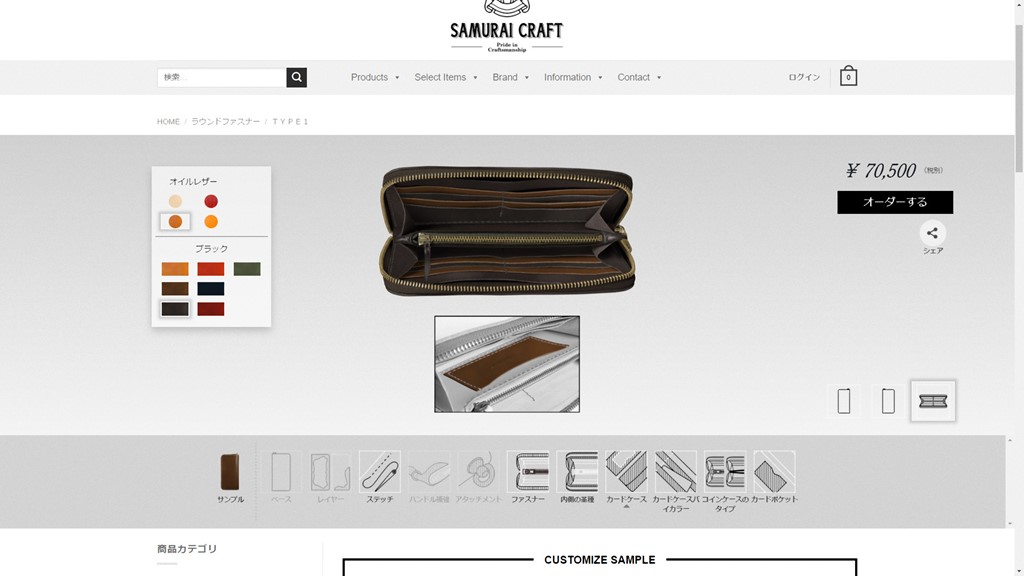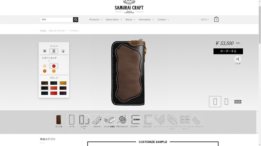 そのはじめの一歩に選んだのは「ウォレット」だ。なんたって大切なお金を入れるものだし、毎日絶対に使う必需品だからね。今回実際にカスタムオーダーをしてみたサムライクラフトのWEBサイトでは、順を追ってウォレットのカスタマイズをサポートしてくれるので、カスタムオーダー初心者でも、安心して自分だけのウォレット作り上げることが出来る。