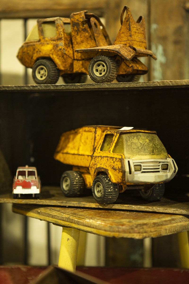 錆びたミニカーはきっと庭に放置され続けていたんだろうなというストーリーを感じる。下にあるトラックで28ドルというプライス。